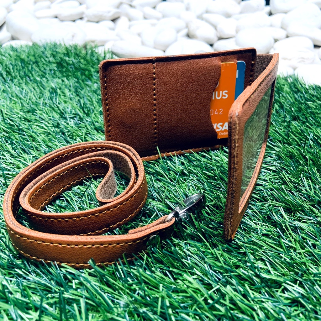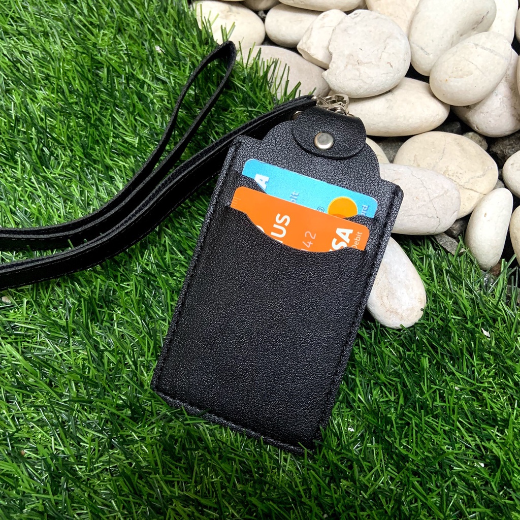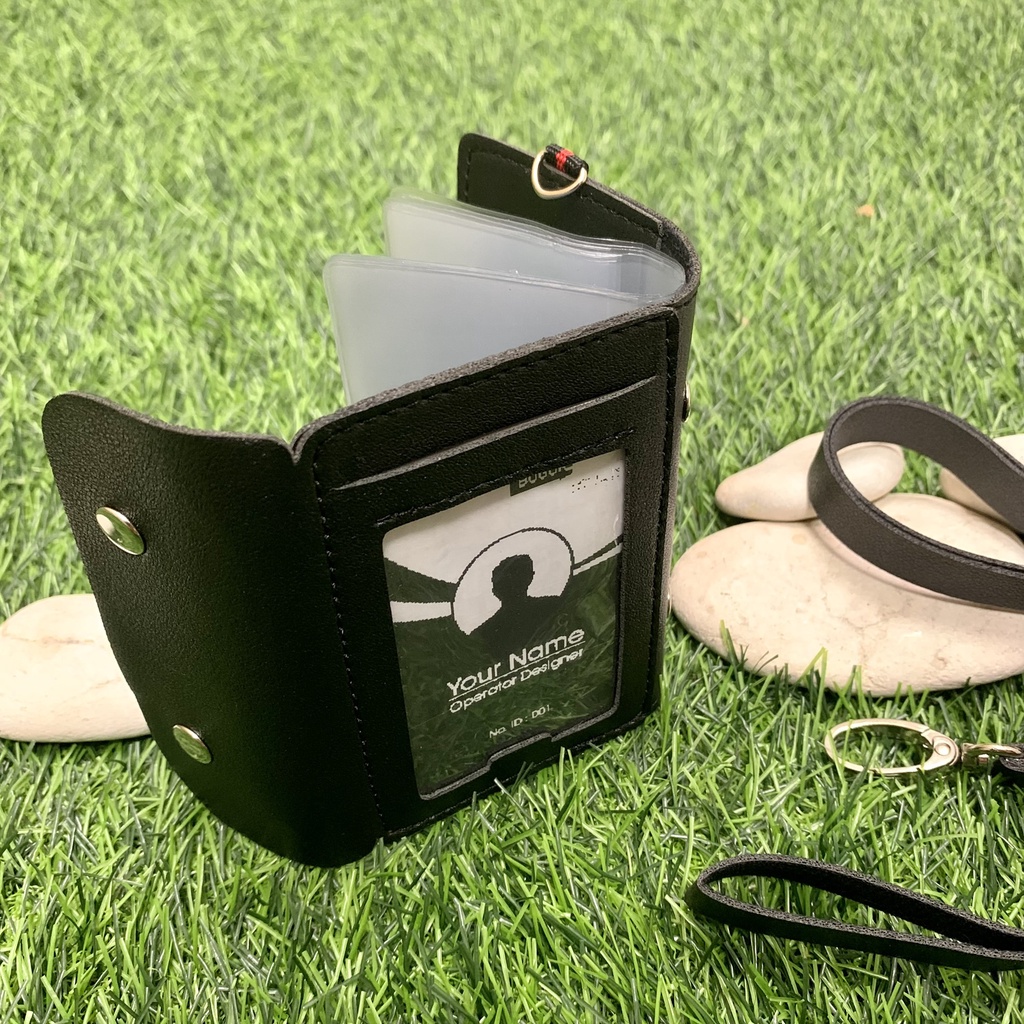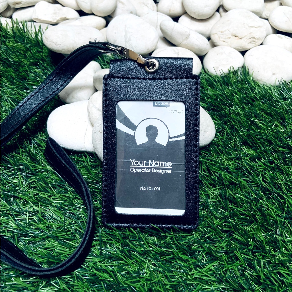 Name Tag Kulit FRONT HITAM Lanyard Magnet Id Card Holder Koper Pegawai