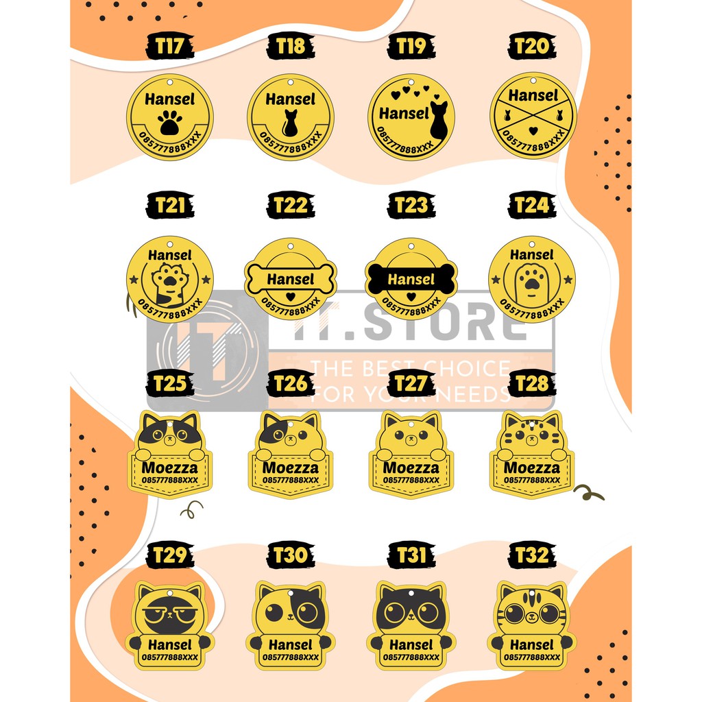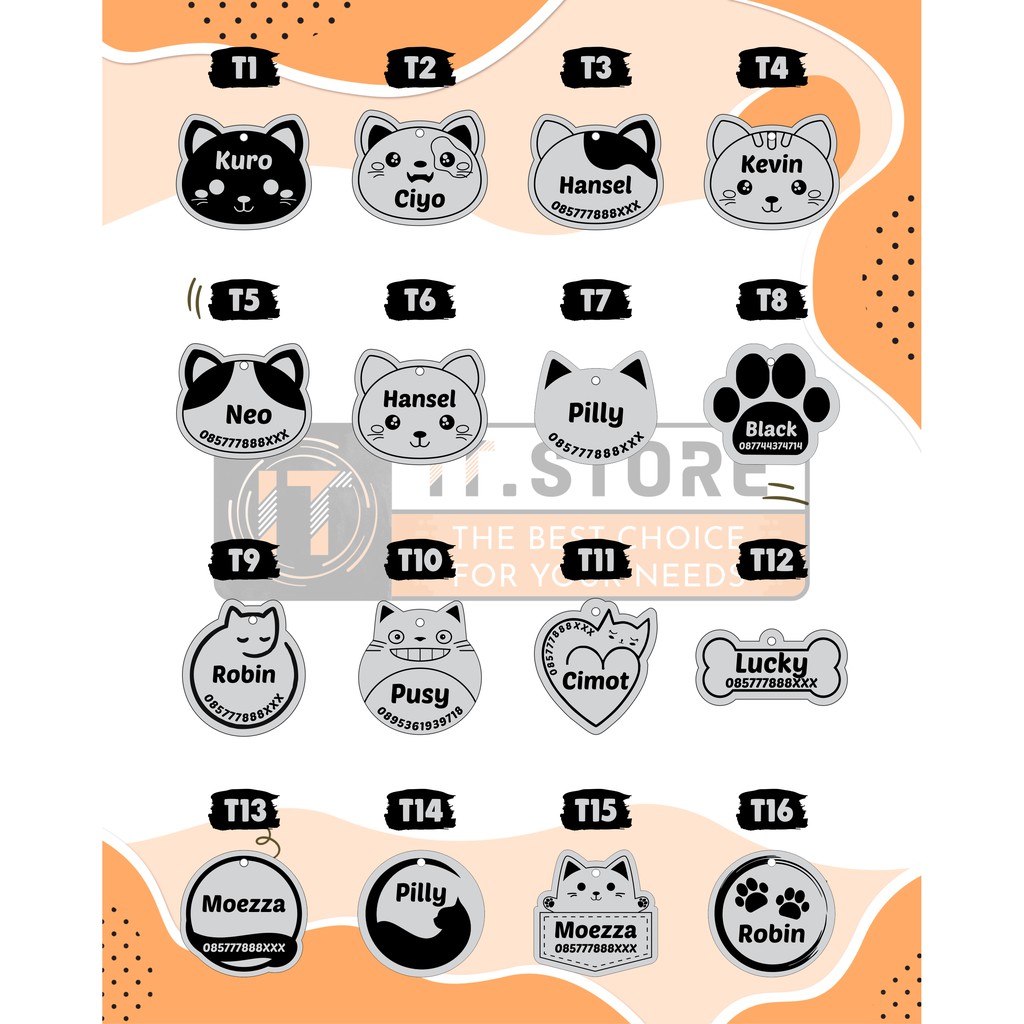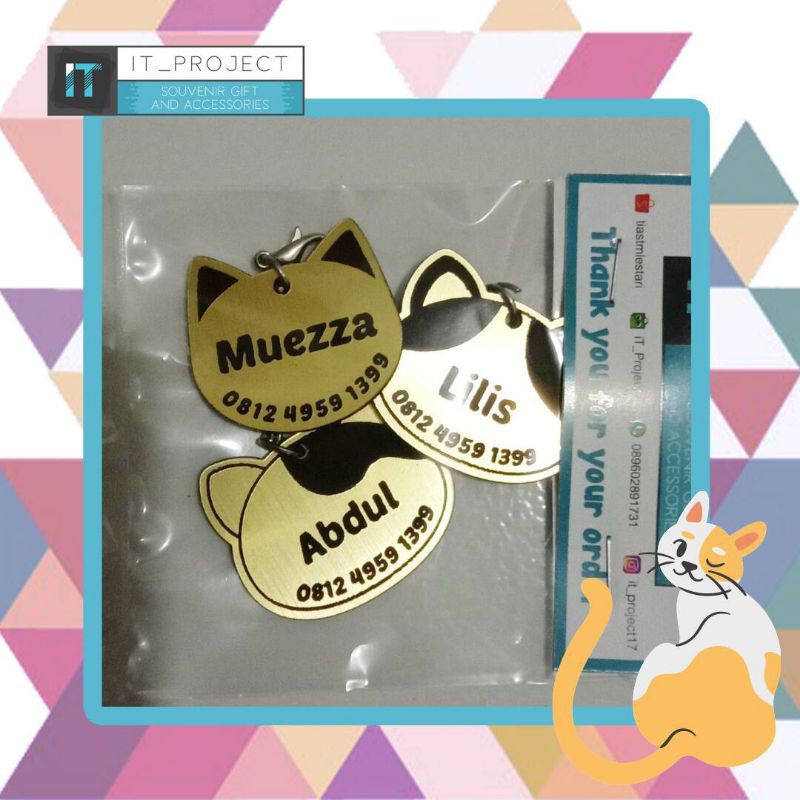 Name tag kucing anjing kelinci hewan peliharaan Custom TANPA KALUNG