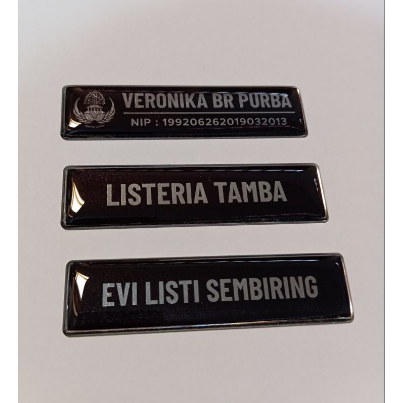 Nametag Resin / Papan Nama Resin / Papan Dada Resin (Akrilik Putih/Hitam/Oval/Kuningan/Stainless)