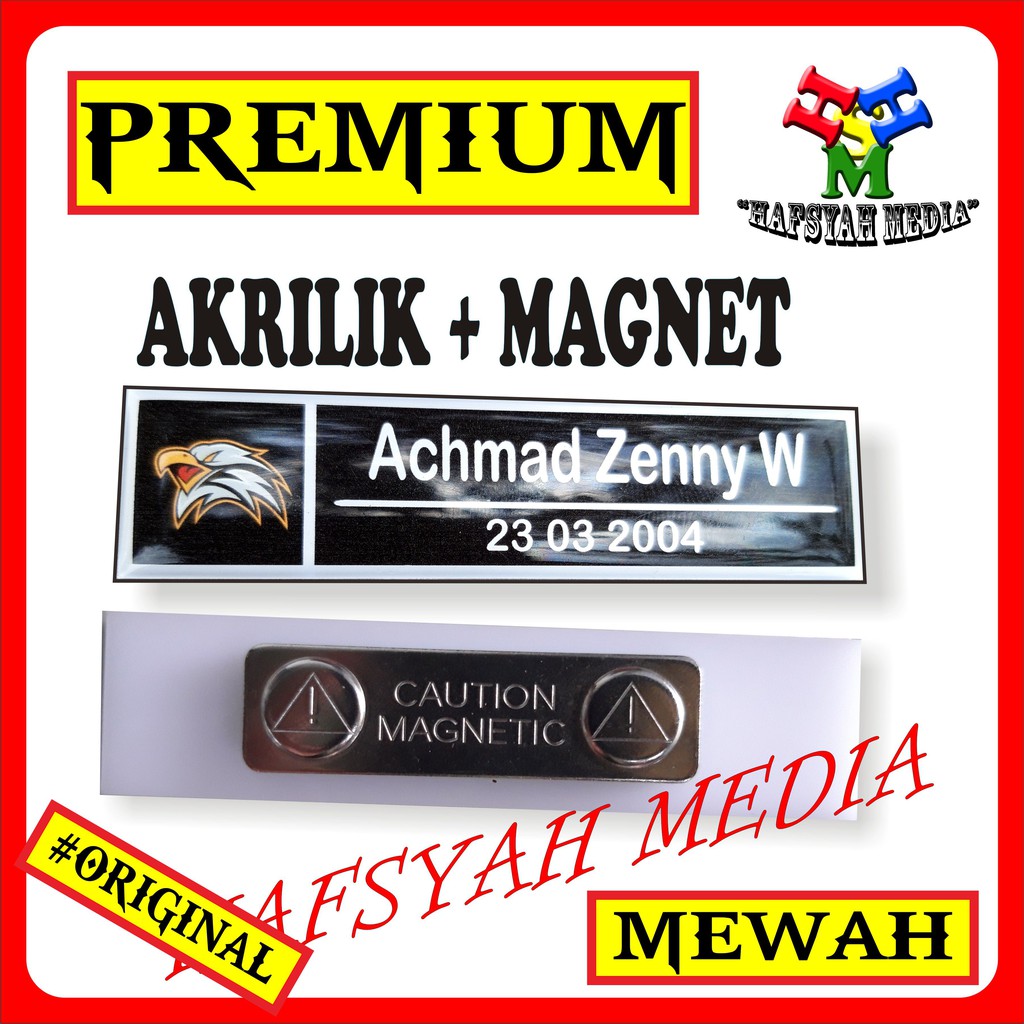 Nametag / nama dada / name tag dada / name tag akrilik magnet / bisa satuan proses cepat