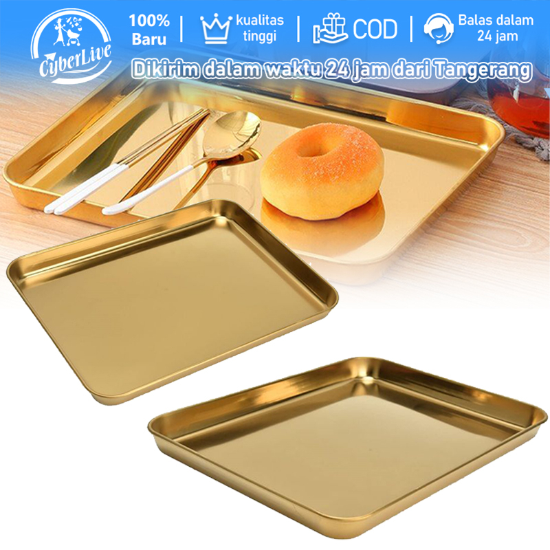 Nampan Emas Stainless Segi Empat Nampan Baki Emasserving Tray Baki Saji Makanan Minuman Dessert