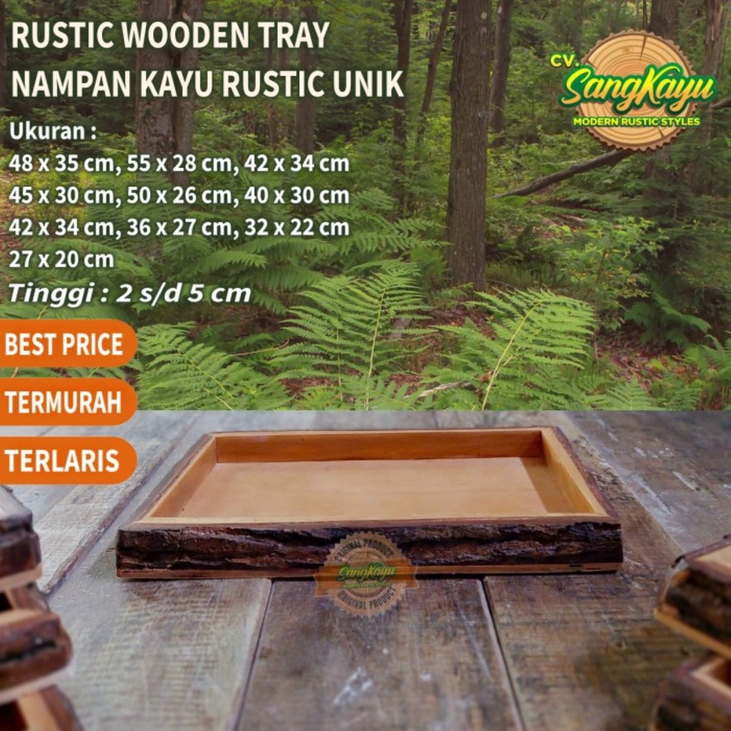 Nampan kayu nampan besar unik rustic baki tray kayu kotak seserahan - 27 x 20 cm, Plywood / 2 cm