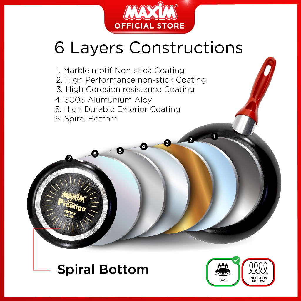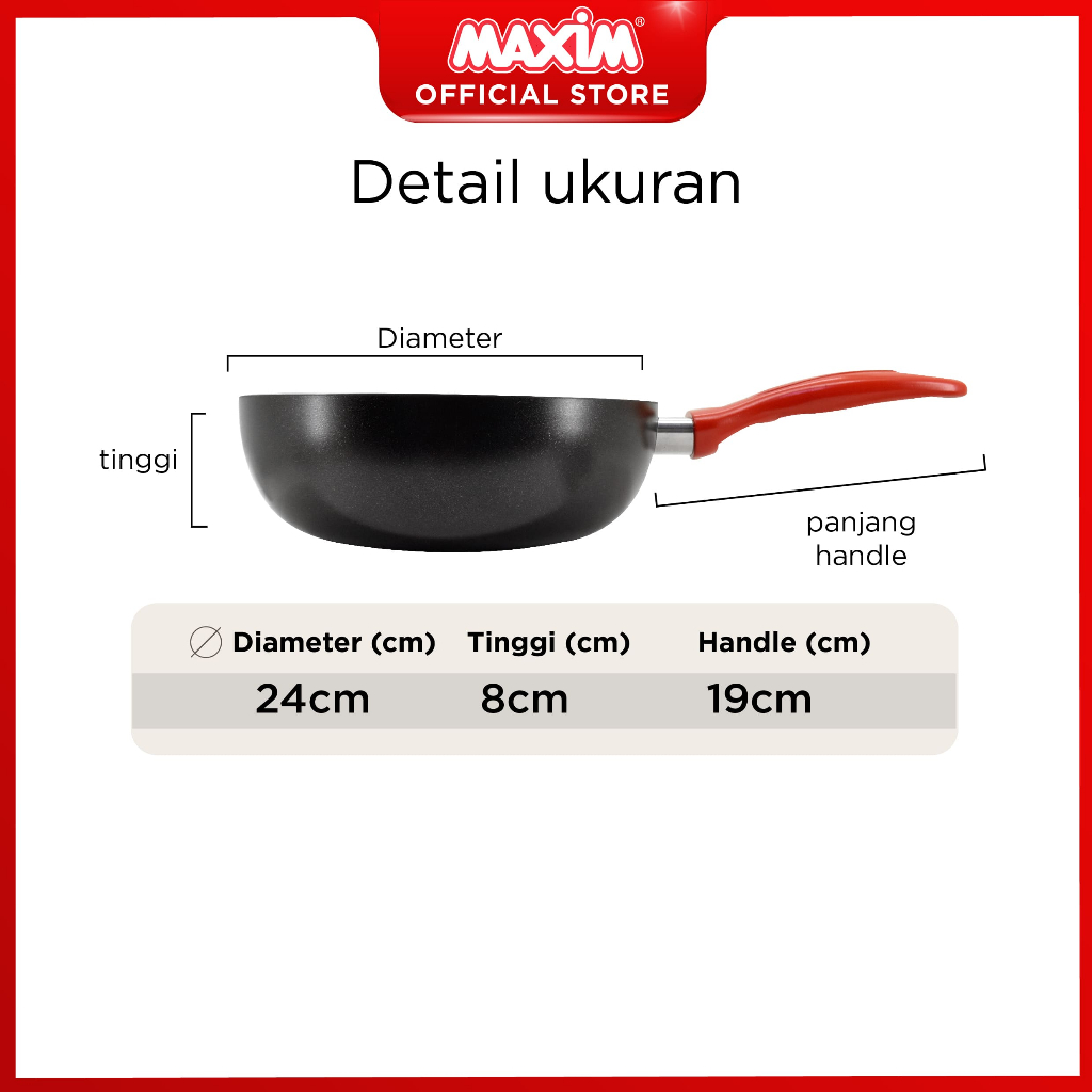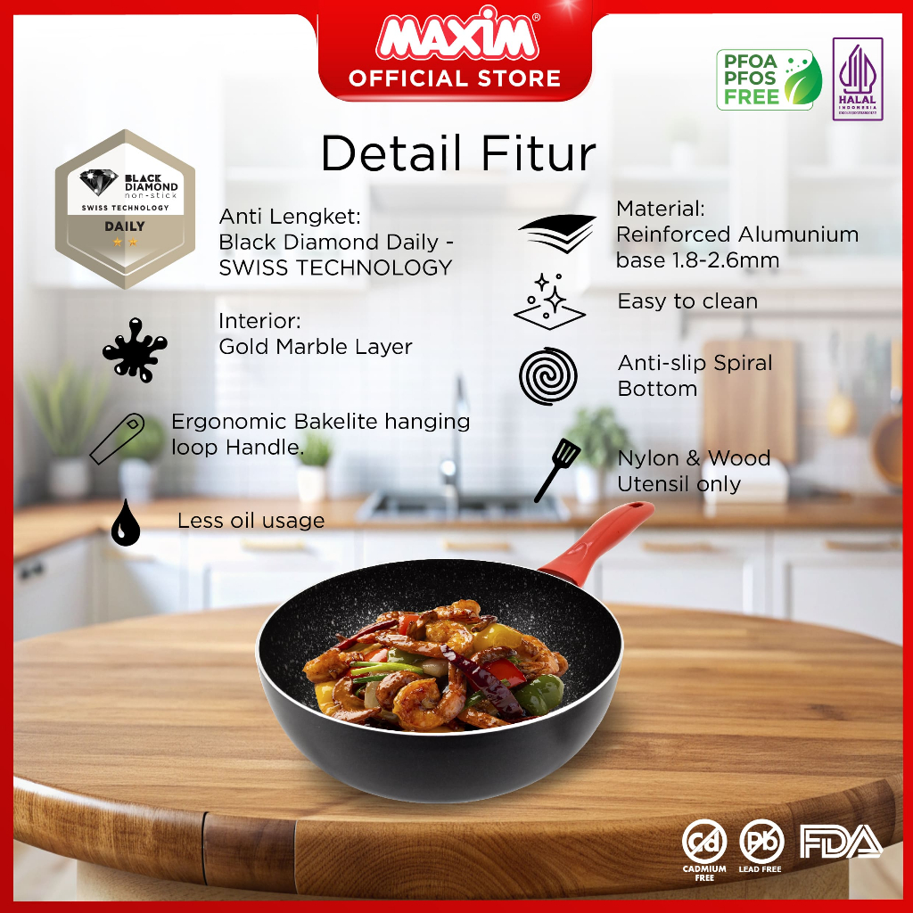 Maxim New Prestige Wajan Penggorengan Teflon Anti Lengket 24cm Deep Wok