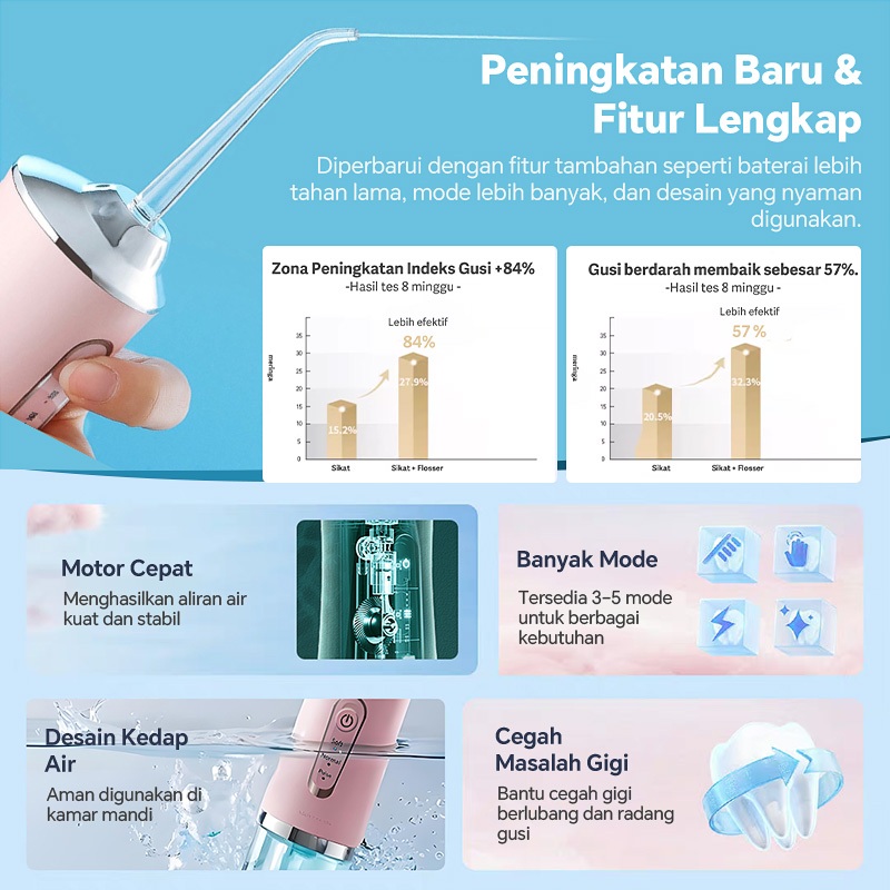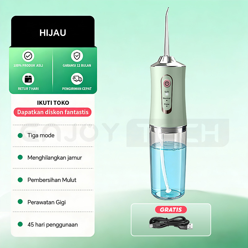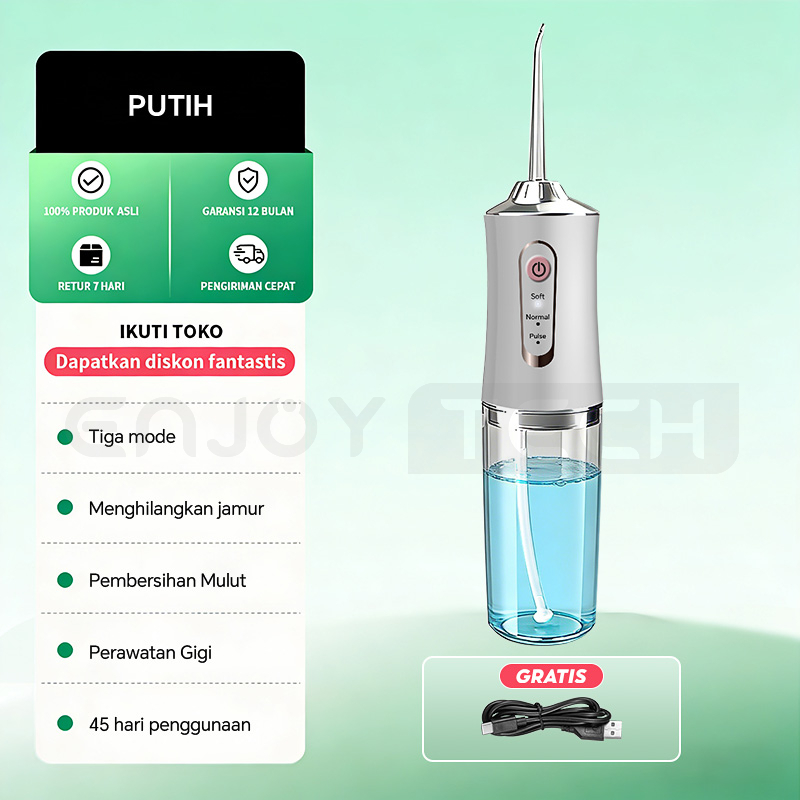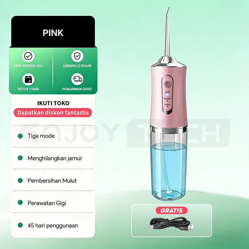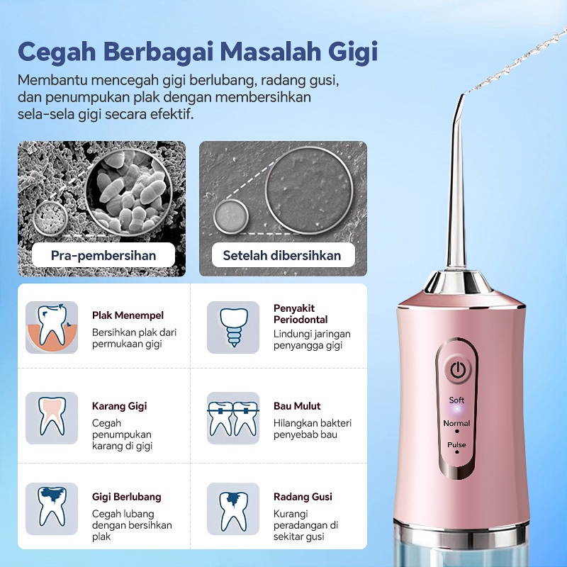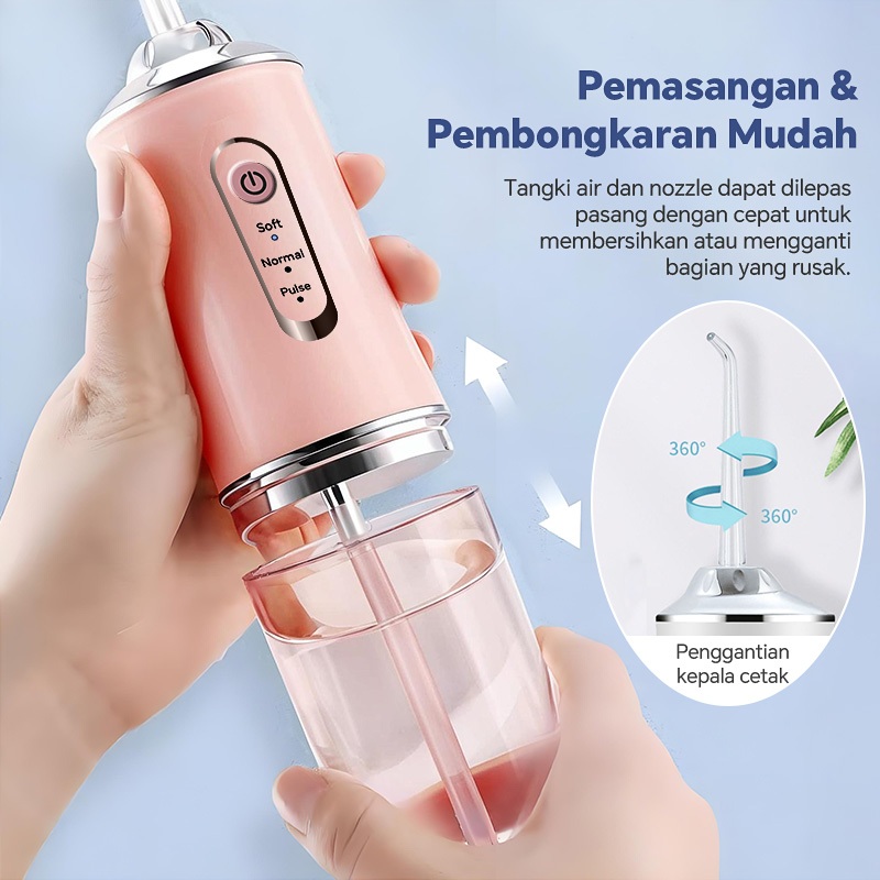 Electric Oral Lrrigator Water Flosser (3 mode) Irigator mulut PortablePembersih Gigi Listrik Penghapusan alat pembersih karang gigi Mini Water Floss