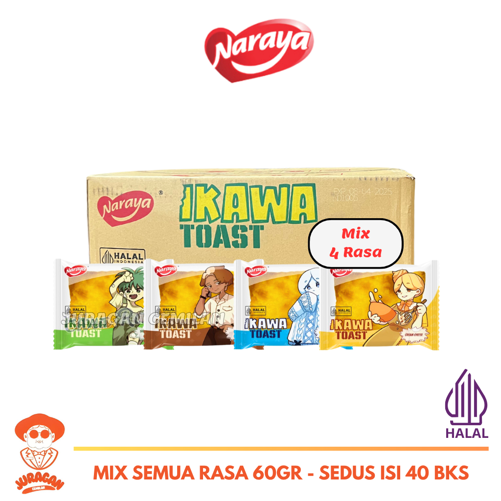 Naraya Ikawa Toast - Roti Panggang Viral Rasa Coklat, Cheese, Srikaya Pandan & Vanila Halal Dus Isi 40bks