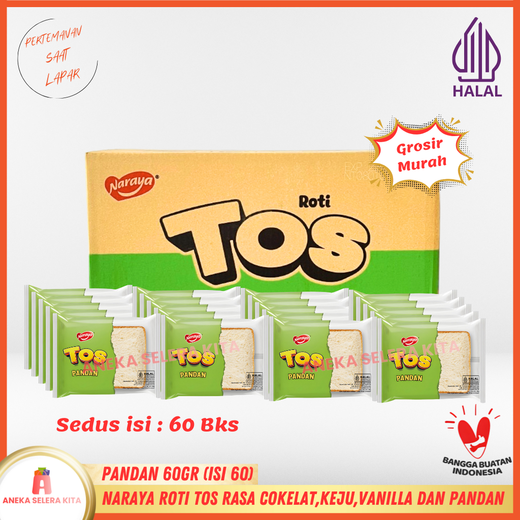 Naraya Ikawa Toast Roti Panggang Viral Rasa Coklat, Cheese, Srikaya Pandan & Vanila Halal Dus Isi 40bks