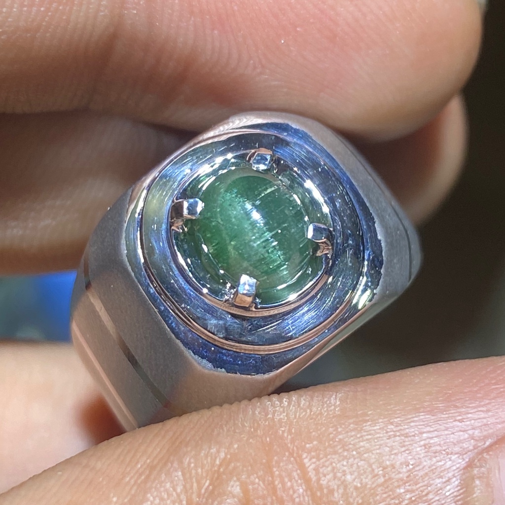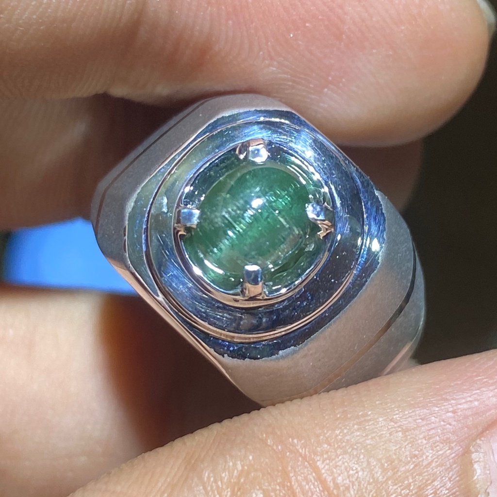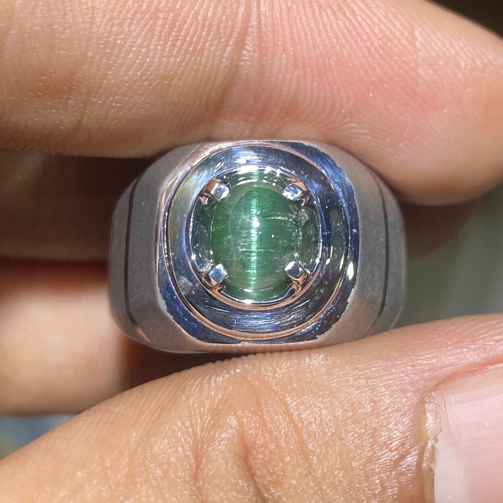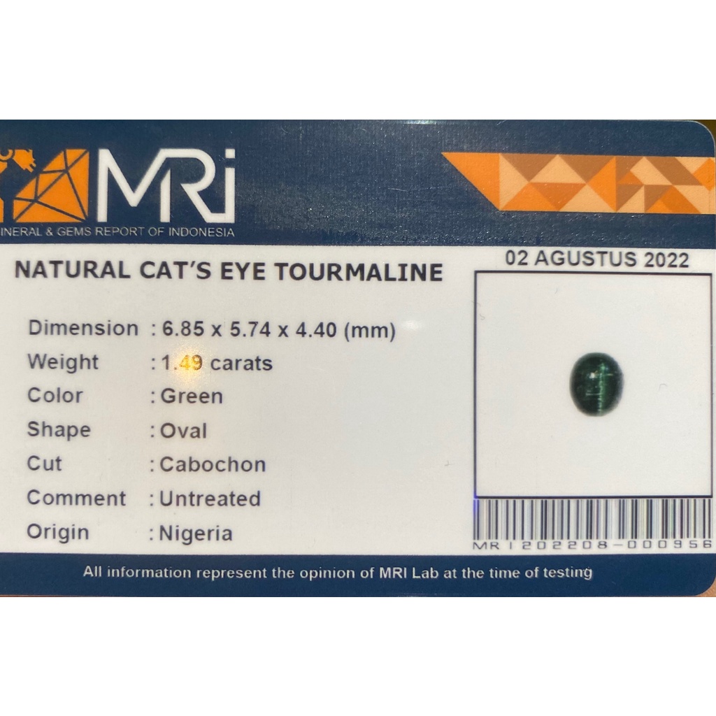Natural 1.49ct Batu Cat Eye Tourmaline Mata kucing Hijau perak