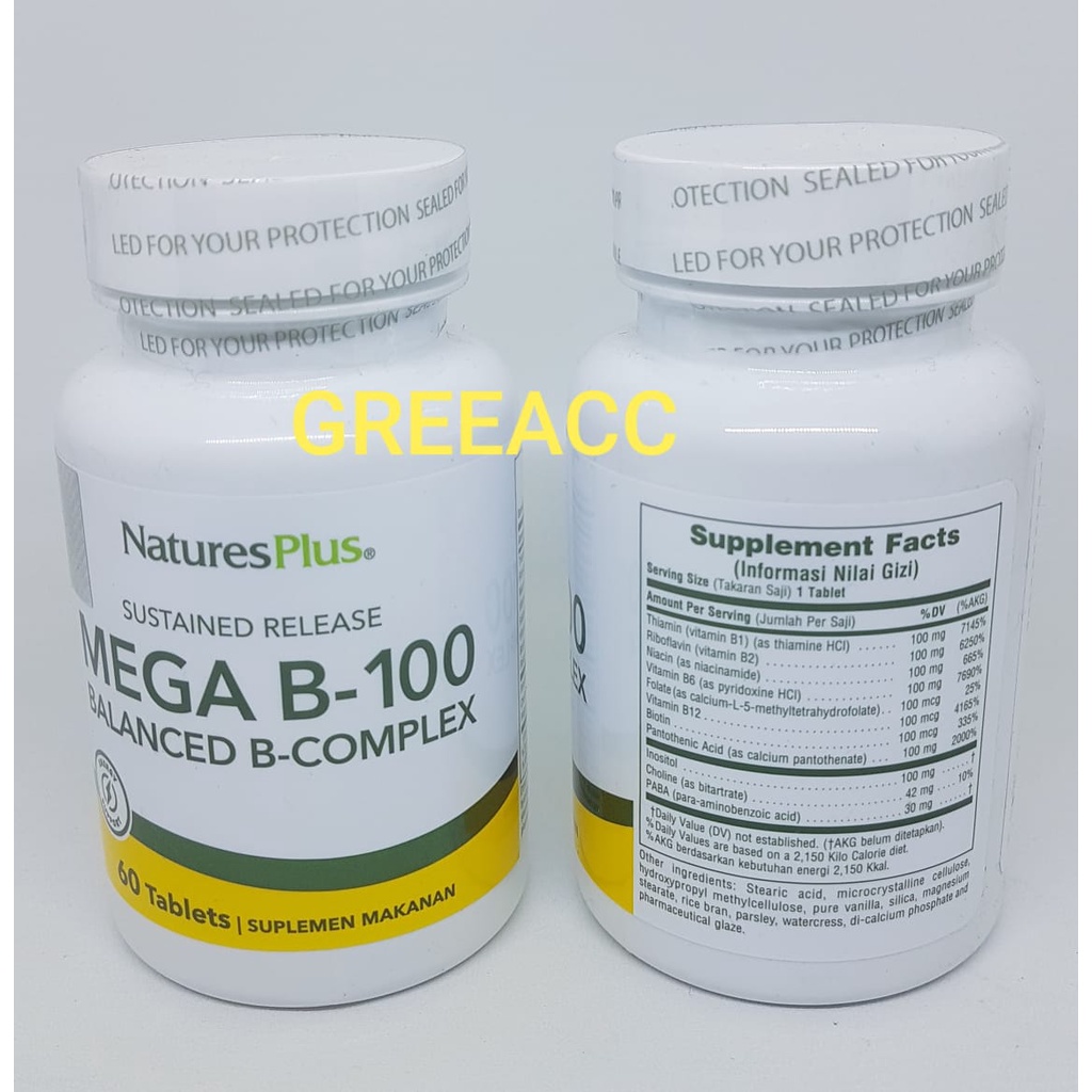 Nature's Plus MEGA B-100 B COMPLEX 100 Natures Vit Anti Stress 60 tab Natures Plus MegaB Vitamin B Kompleks