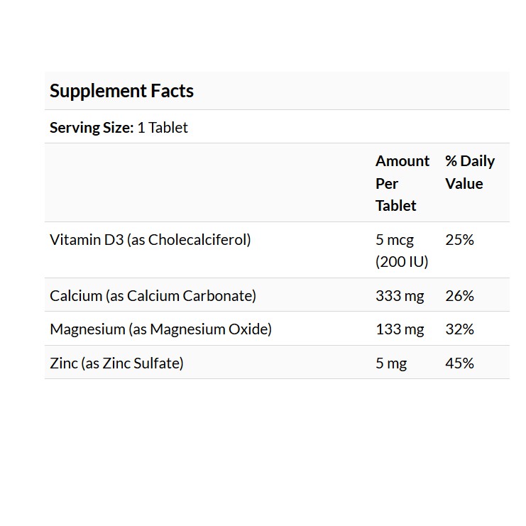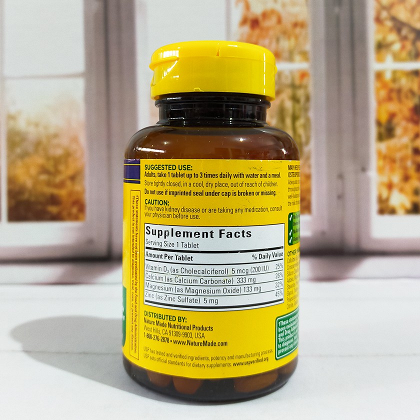 Nature Made Calcium Magnesium Zinc with Vitamin D3 100 Tablets