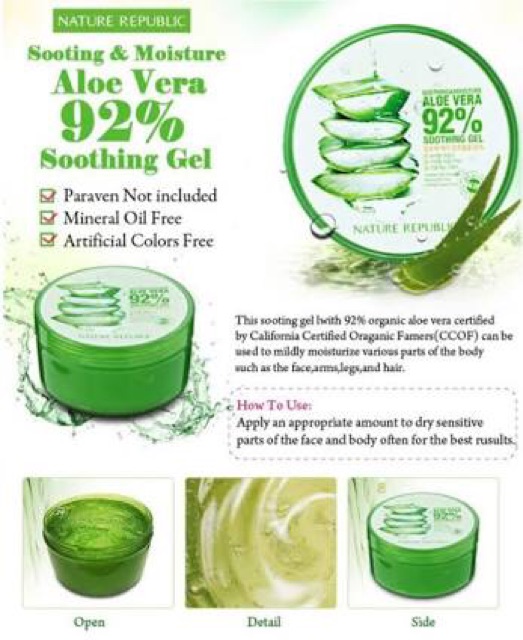 Nature Republic Aloe Vera 92% Soothing Gel 300ml 100% Ori Fr Korea