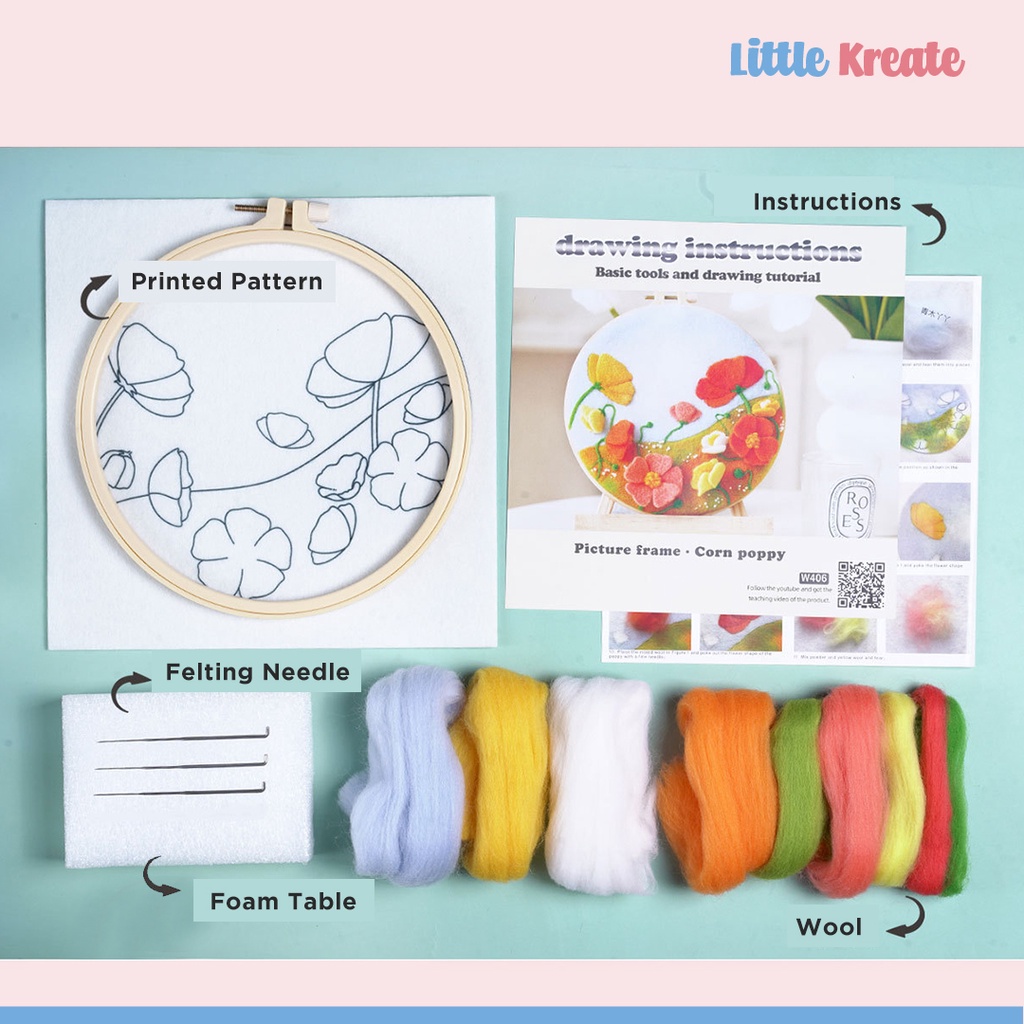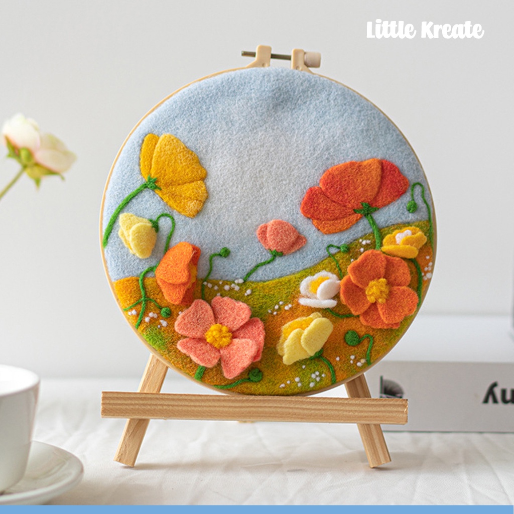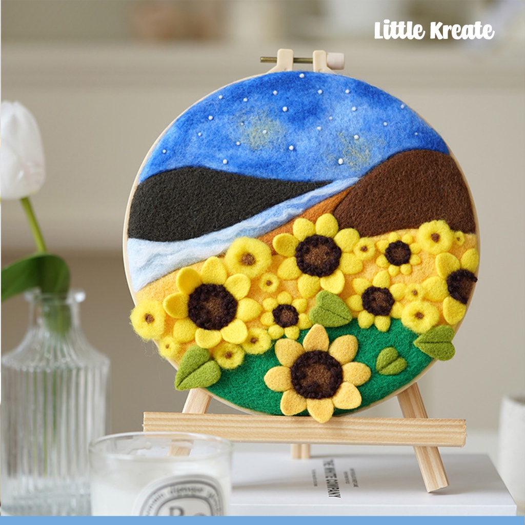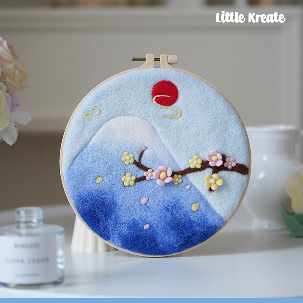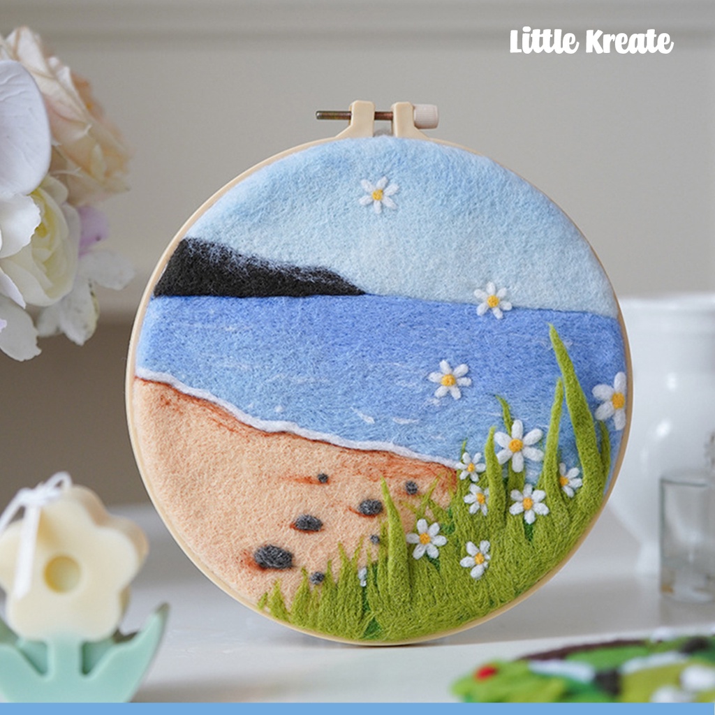 Needle Felt Landscape Set - Little Kreate DIY Needle Felting Hoop Kit - Wool Felt Handmade Craft - Paket Felt Lanskap Jarum Tusuk Lukisan - Kerajinan Tangan