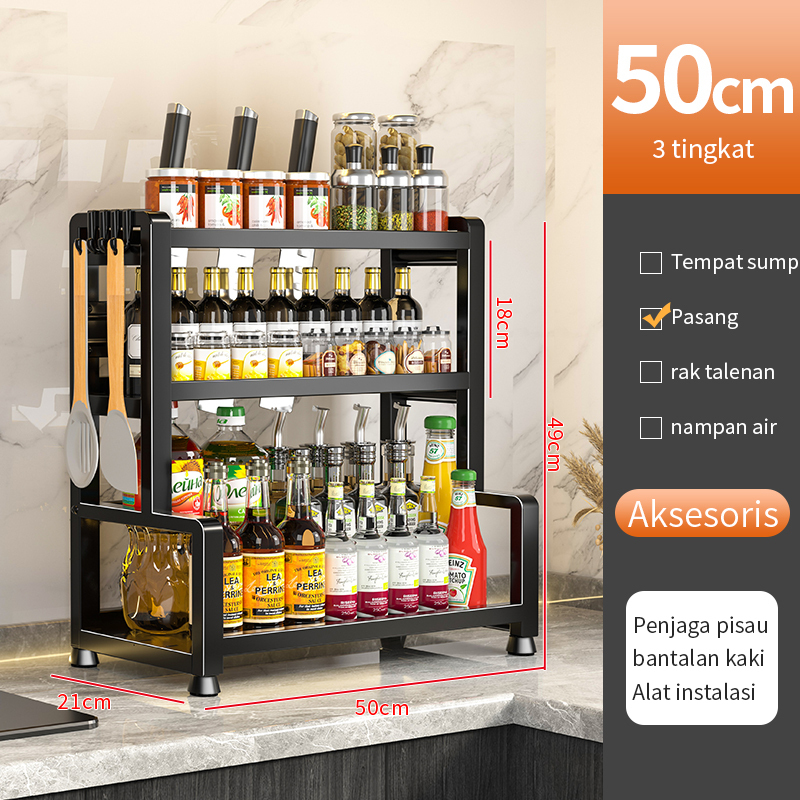Nekoda Rak Bumbu Dapur/ Rak Bumbu Serbaguna Dapur/ Rak Bumbu Stainless Steel/ rak Penyimpanan Bumbu 2/3 lapis
