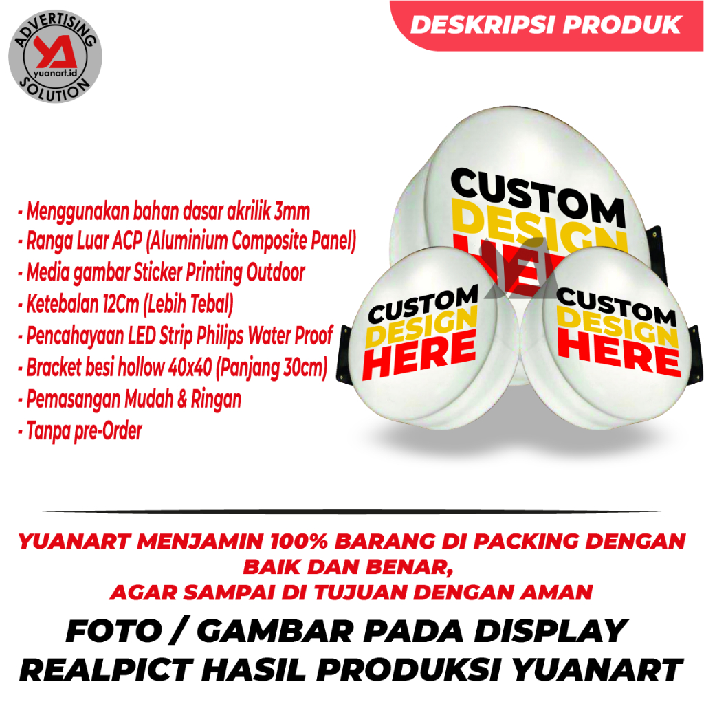 Neon Box Akrilik Bulat 2 Sisi Uk. 30x30 | Neon Box Custom | Papan Nama Toko