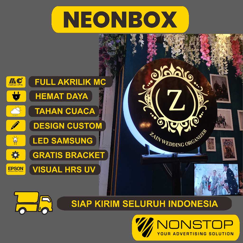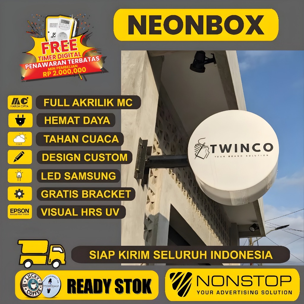 Neon Box Bulat 2 Sisi Akrilik Bundar Bebas Custom LED Kualitas Premium Desain Sendiri / Gratis Desain Dari Toko READY STOK BISA LEBIH CEPAT
