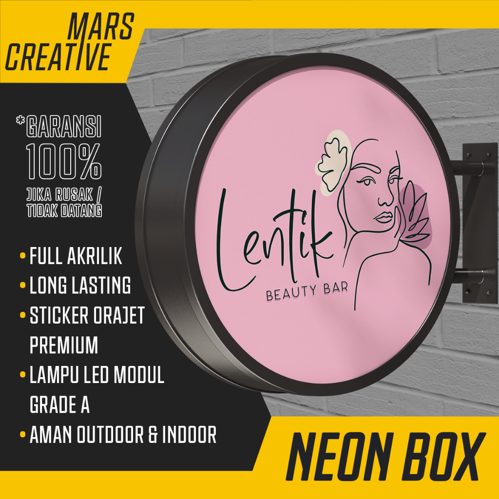 Neon Box Indoor / Outdoor Termurah Ukuran 50 x 90 cm Bentuk Persegi Panjang Lampu LED Cahaya Terang Tahan Lama Kualitas Premium Bentuk Bulat Oval Kotak Persegi Panjang
