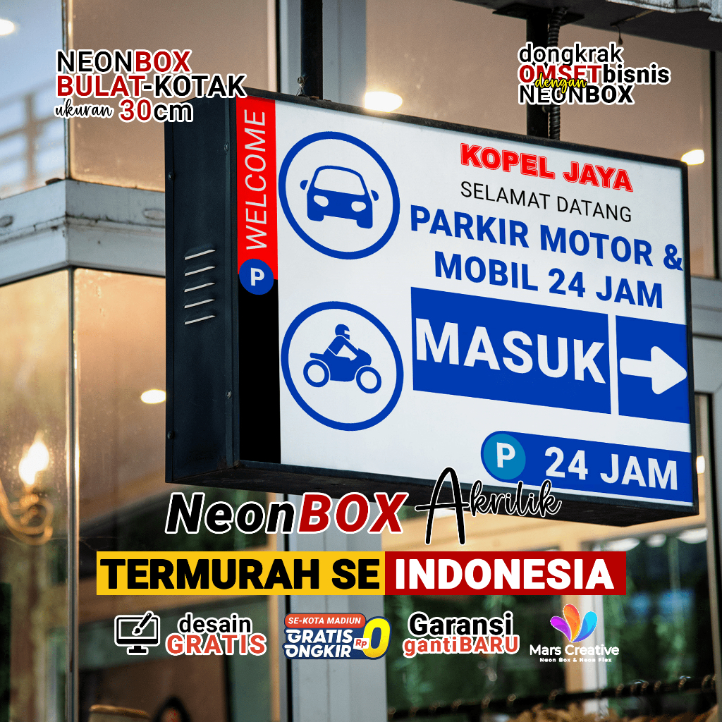 Neon Box Kotak Bulat Indoor Outdoor 30cm Hingga 120cm Satu Muka Dua Muka Untuk Usaha Dan Berbagai Ukuran