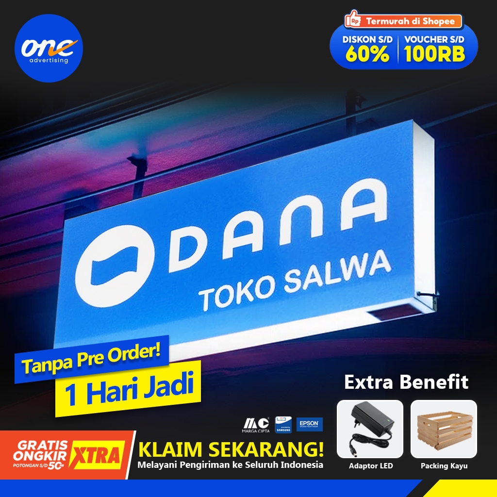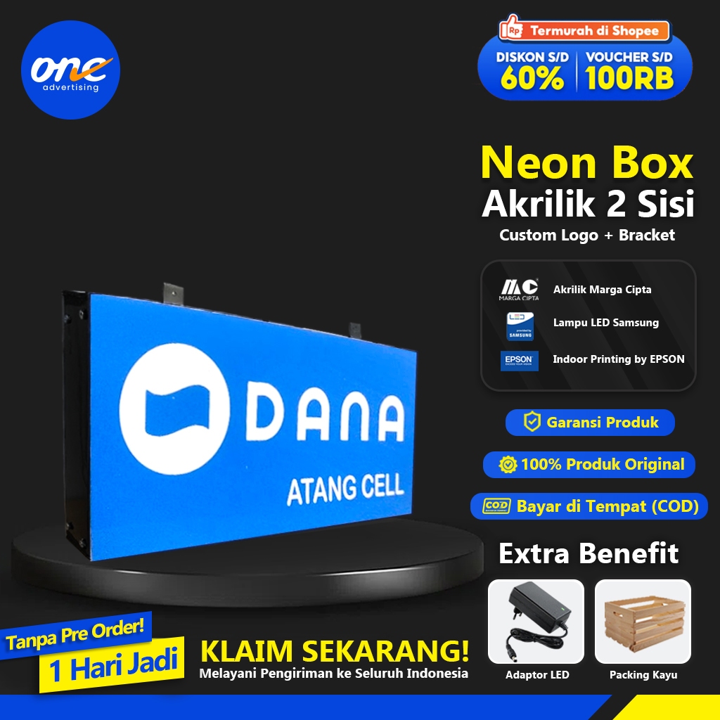 Neon Box Kotak Konter Dana Brilik Pulsa Akrilik 2sisi Outdoor Siap Pasang (Free Request Desain)