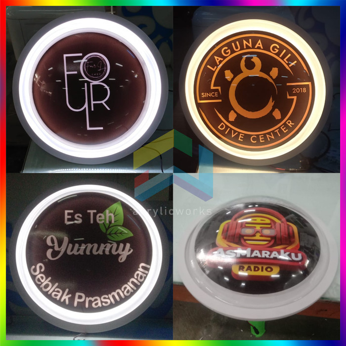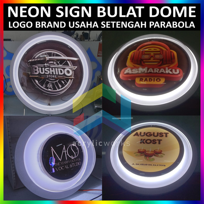 Neon Signage Logo Papan Usaha Toko Nyala LED Bulat Dome Modern Elegan