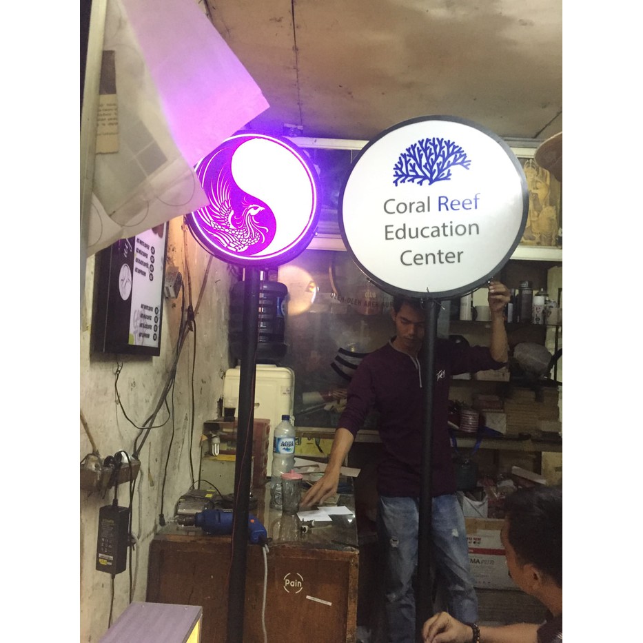 Neon box 40 cm bulat dan tiang&hd995