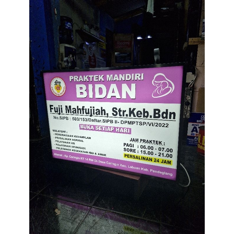 Neon box akrilik 2sisi 65x40,70x50 Bidan, dokter, dokter gigi, kios, cafe, barbershop, dll.