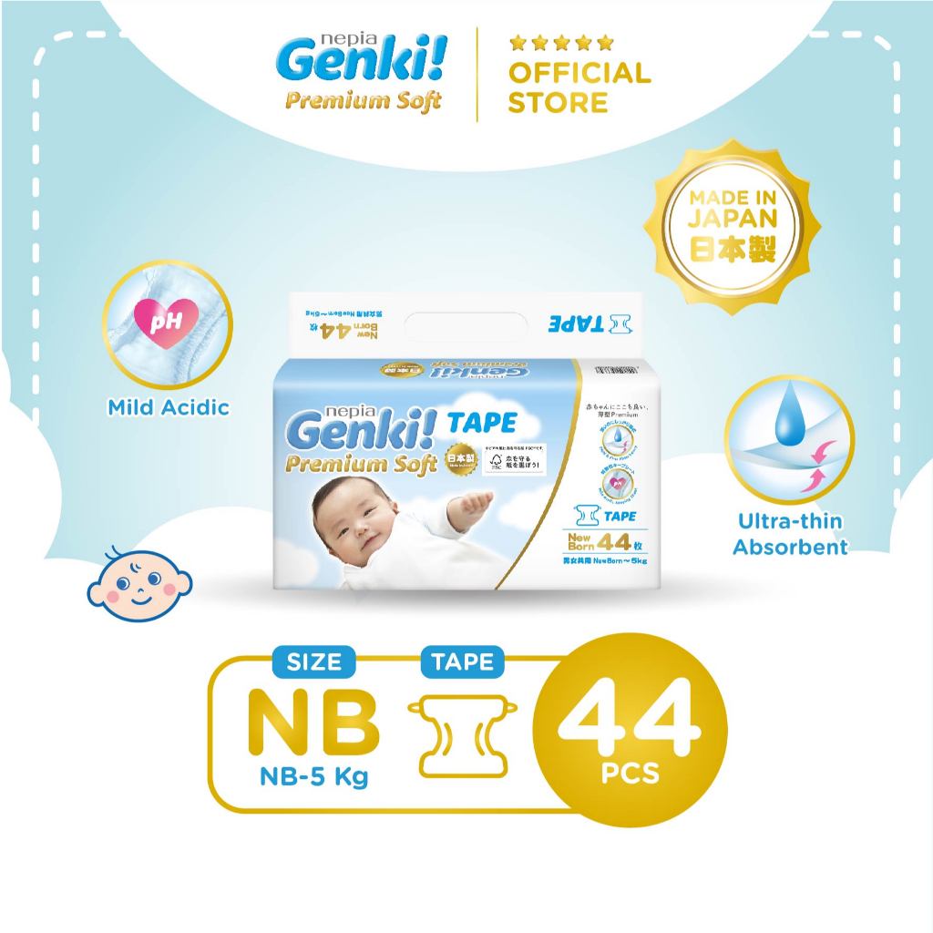 Nepia Genki Popok Bayi Tape / Perekat Bayi Diapers Premium Soft NB44
