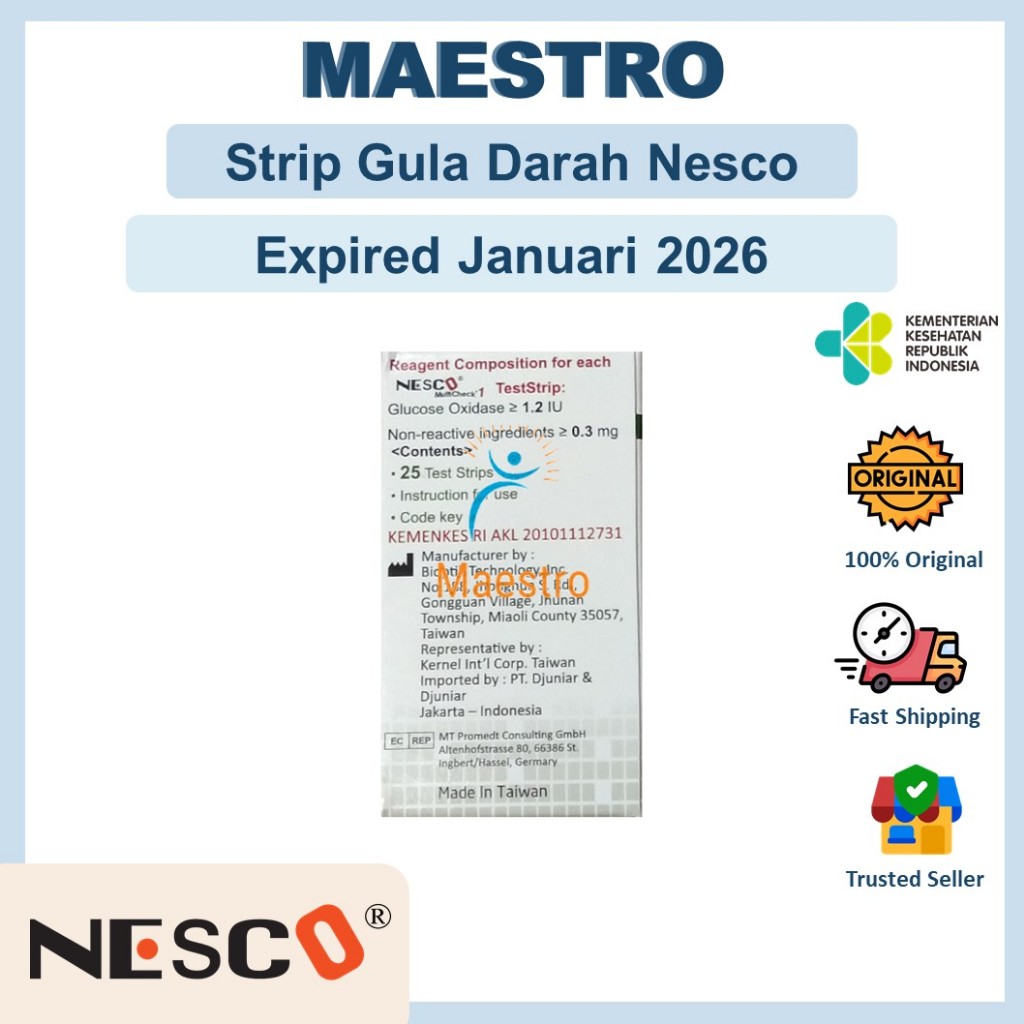 Nesco Strip Tes Gula Darah Isi 25 Stik Glukosa GDS Expired Panjang ED