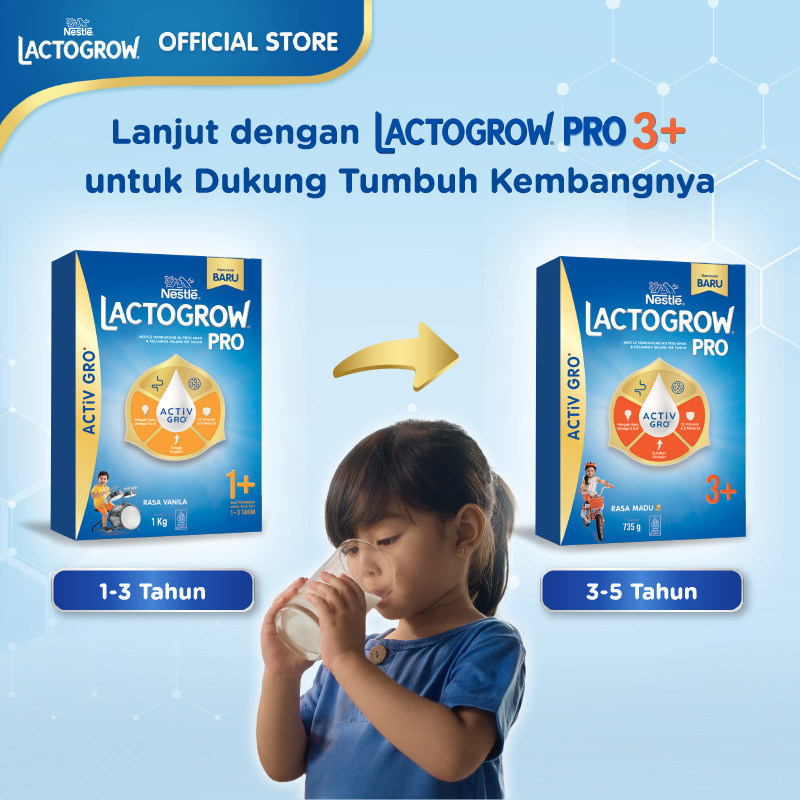 Nestle LACTOGROW PRO 1+ / LACTOGROW 3 dengan ACTiVGRO Susu Vanila Box - 1000g [1-3 tahun]