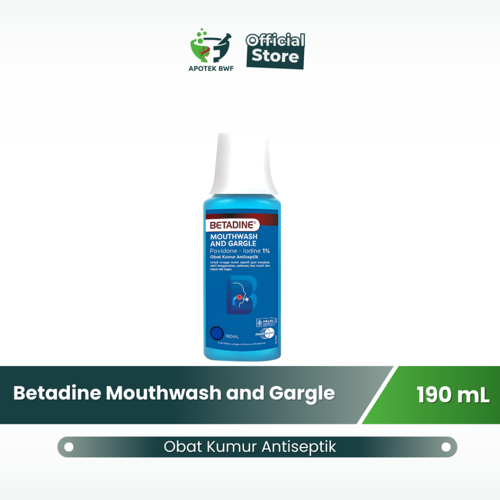 BETADINE Mouthwash 190ml Antiseptik Sariawan Bau Mulut Povidone Iodine 1%