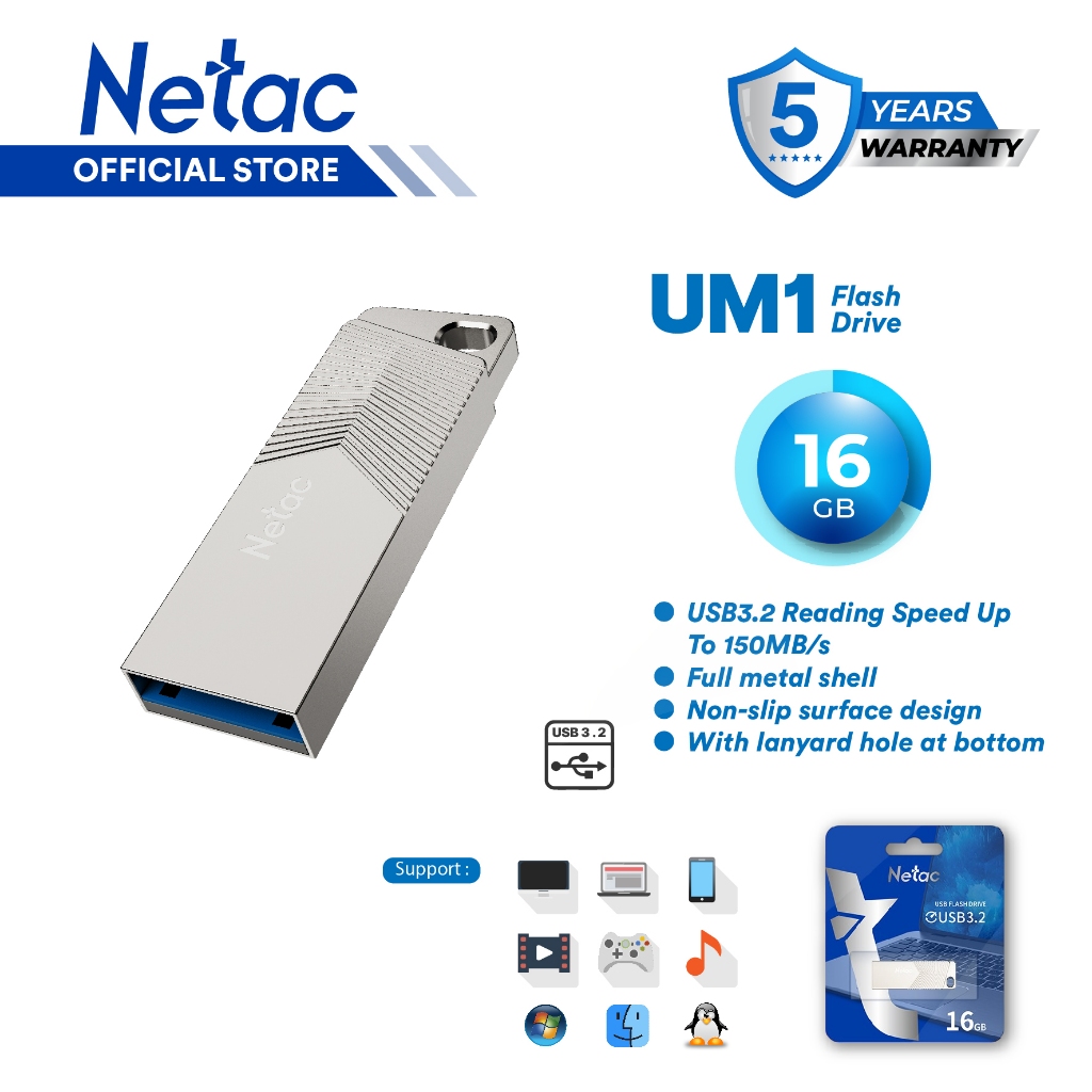 Netac Flashdisk UM1 USB 3.2 Flash Drive 16GB Ultra compact Flash Disk Jump Drive Support for Computer Smart TV