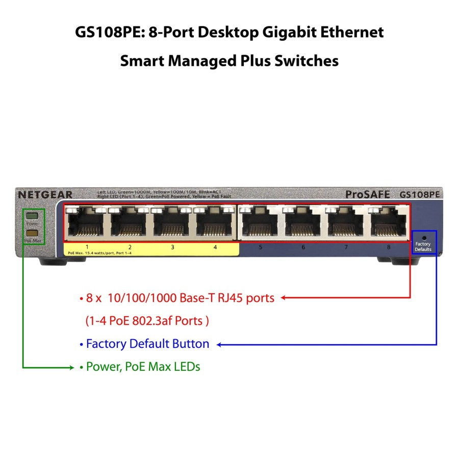 Netgear GS108PE 8 Port Gigabit Ethernet Unmanaged POE Switch