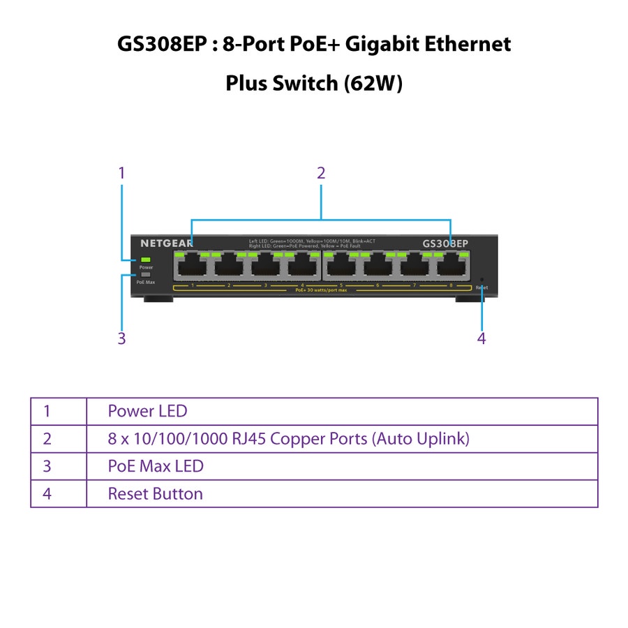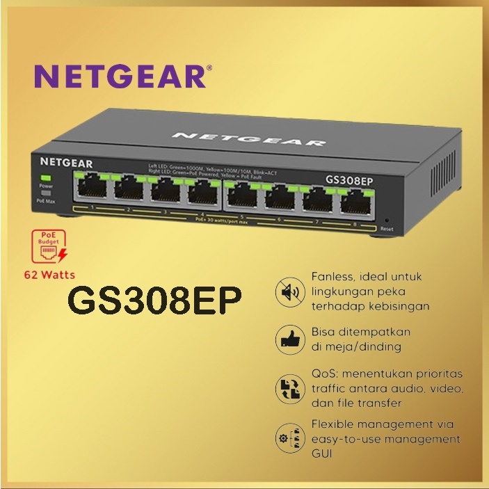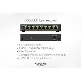 Netgear GS308EP 8-PORT GIGABIT ETHERNET SWITCH POE+ - GS 308EP