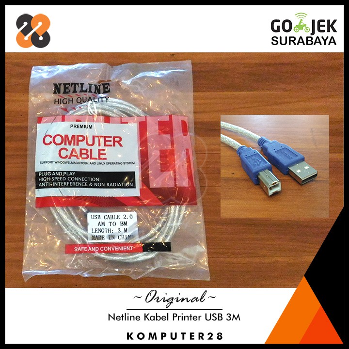 Netline Kabel Printer USB - USB A Male to USB B Male - 3M