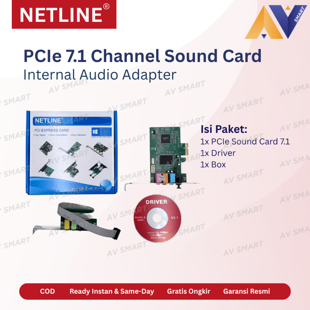 Netline PCIe 7.1 Channel Surround Sound Card Audio Ekspansi PCI Express Expansion Card
