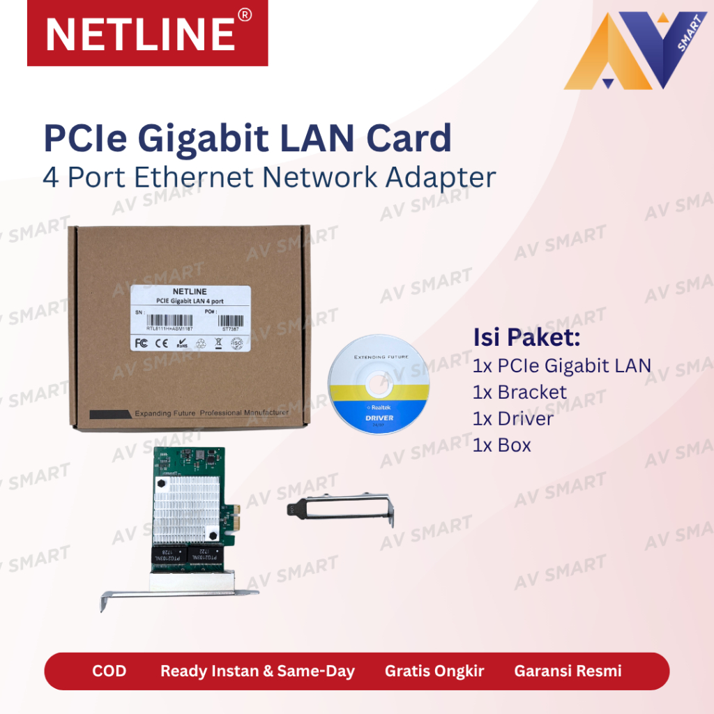 Netline PCIe LAN Gigabit Card 4 Port 1000Mbps PCI Express RJ45 Ethernet Network Adapter | Chipset RTL8111H + ASM1187