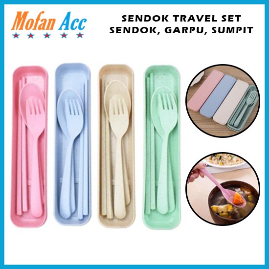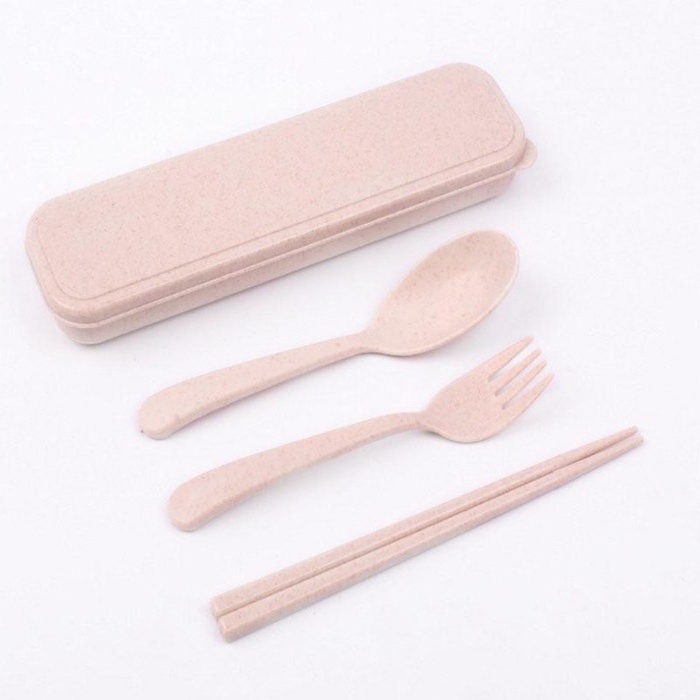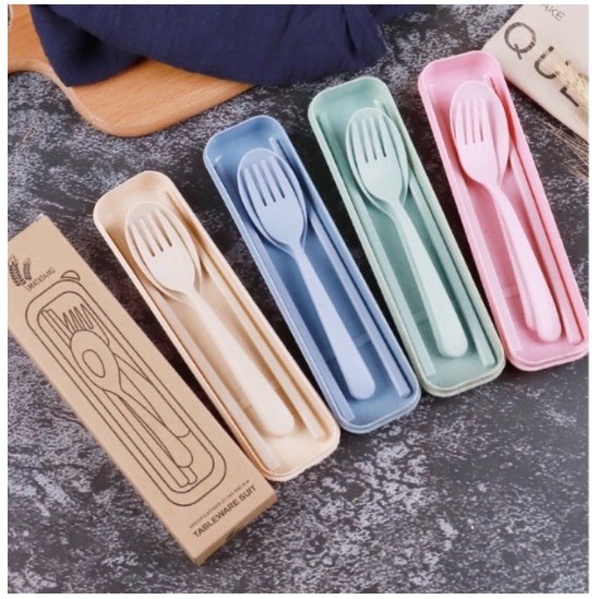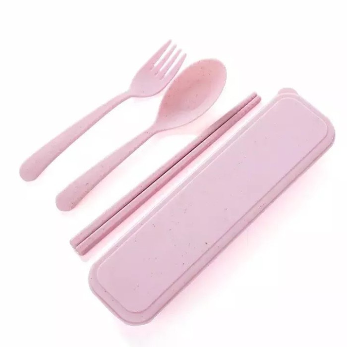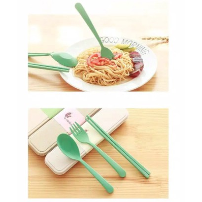 Alat Makan Sendok Sumpit Garpu Alat Makan Box Korea Travelling Set 3IN1 Bahan Plastik