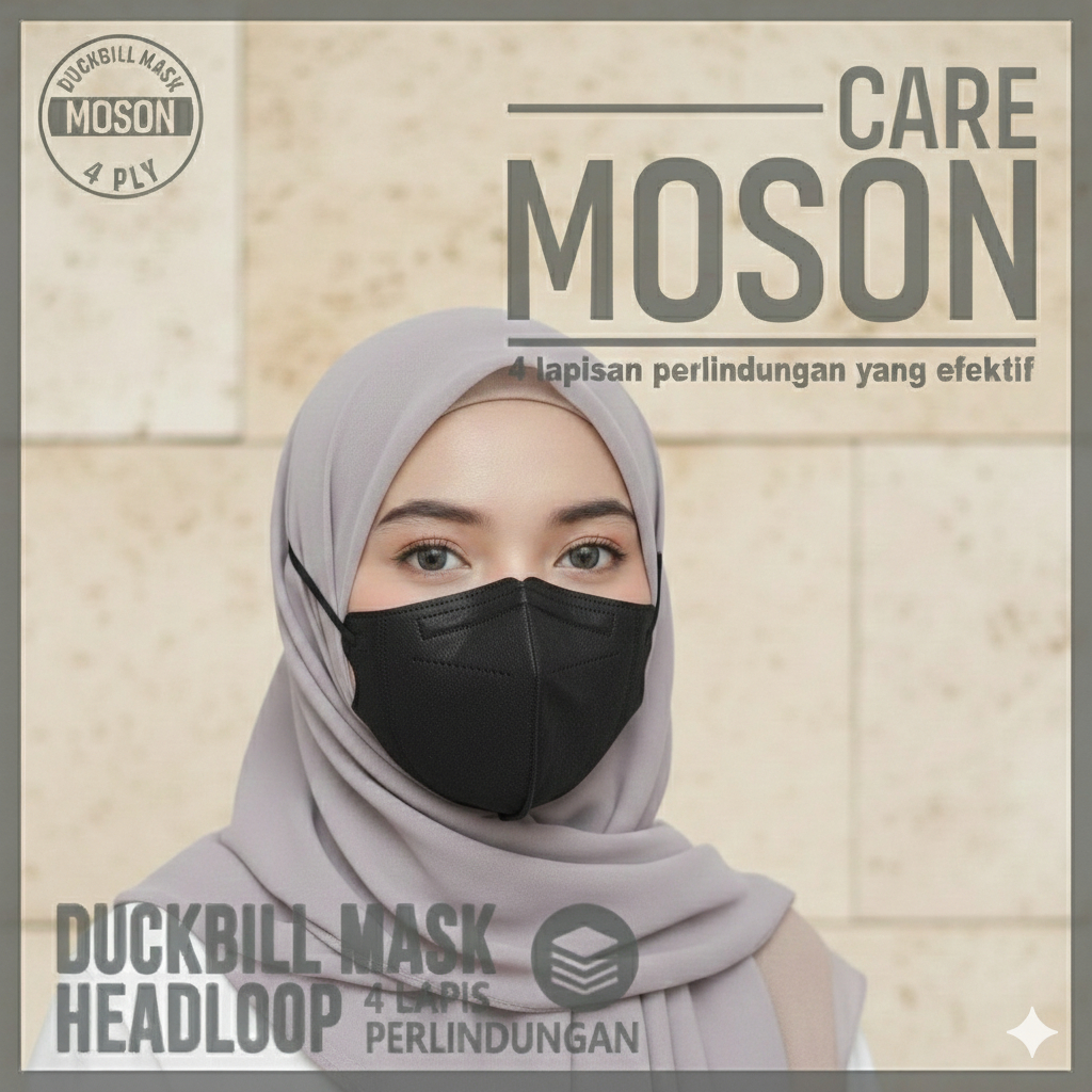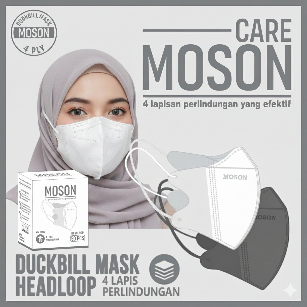 MASKER HIJAB HEADLOOP dan erlop 4PLY 50 PCS TEBAL | MASKER MOSON FACE MASK EMBOS ISI 50PCS+BOX