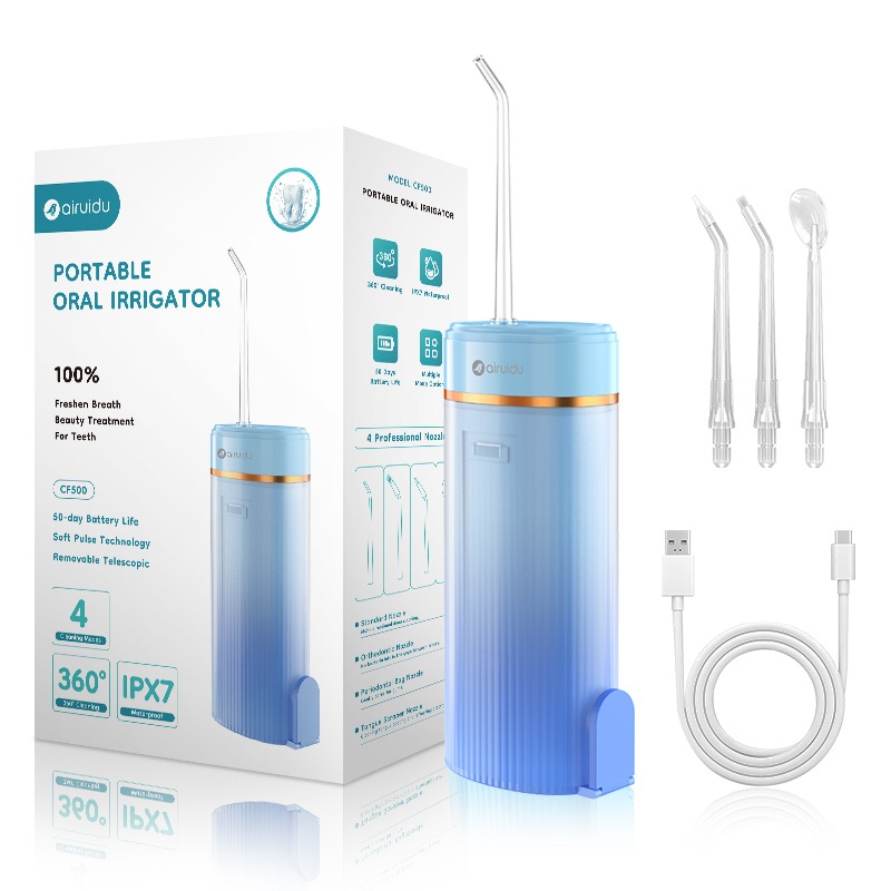 Airuidu Pembersih Karang Gigi Water Floss Electric Oral Lrrigator 160 Ml Pembersih Gigi Penyesuaian Mode Pembilasan Tiga Kecepatan Pengisian USB CF500