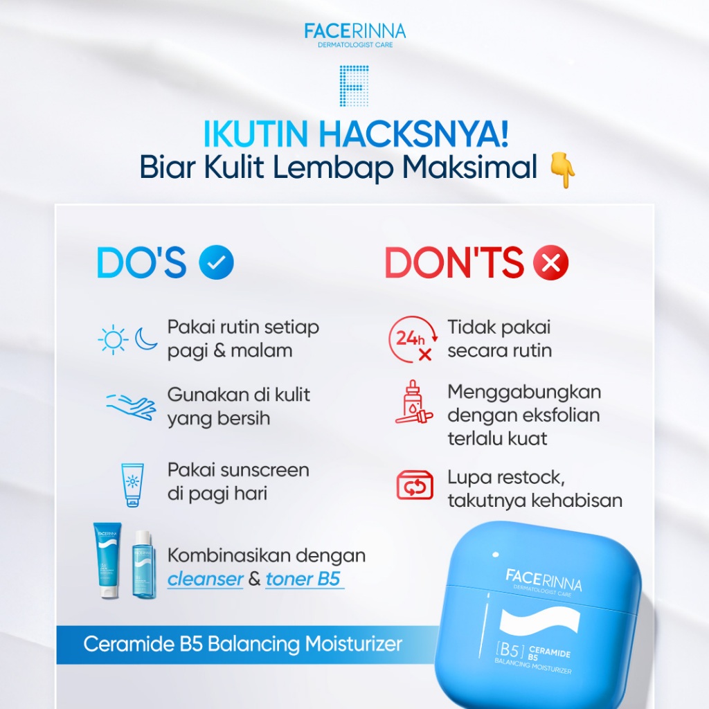 FACERINNA Ceramide B5 Balancing Moisturizer | Menjaga Skin Barrier Memperkuat Mencerahkan wajah Penyerapan cepat Menjaga Keseimbangan Minyak dan Air Kulit Menenangkan Kulit Pelembab Wajah Day Cream Night Cream Skincare BPOM Untuk Kulit Sensitif