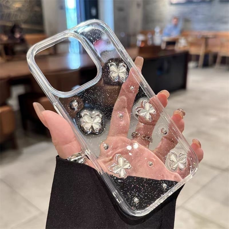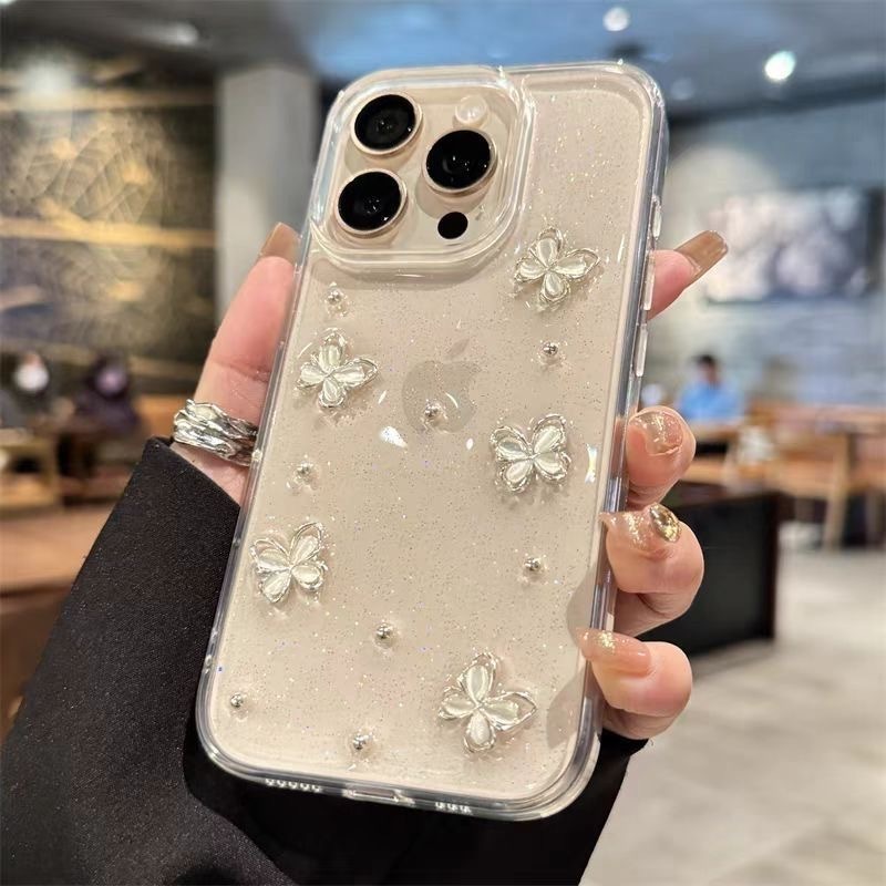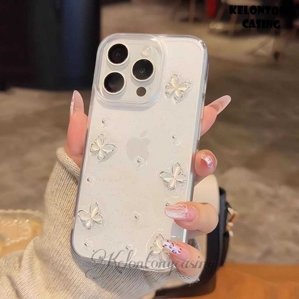New!!! Case Butterfly 3D Glitter Kupu Putih For Iphone 11 12 13 14 15 16 + PLUS 17 PRO MAX