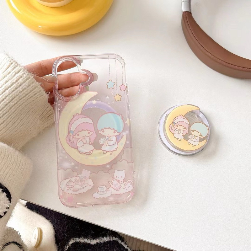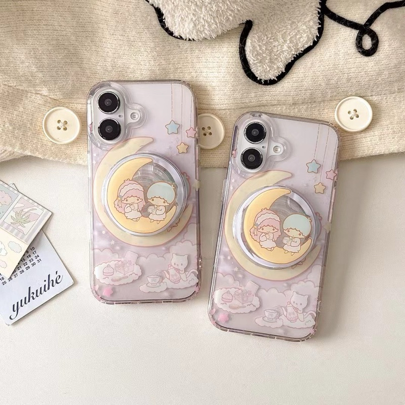 New Case Iphone Model Little Twin Stars Characters Cartoon Magsafe With Popsocket Griptok Magnetic Model Terbaru Imut Viral Hp Full Cover TPU Casing Iphone 16 16Pro 16Promax 15 15Pro 15Promax 14 14Pro 14Promax
