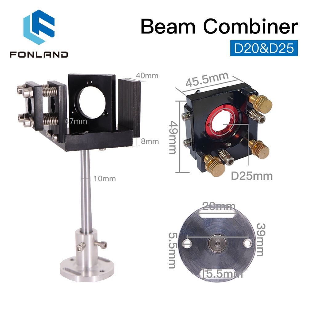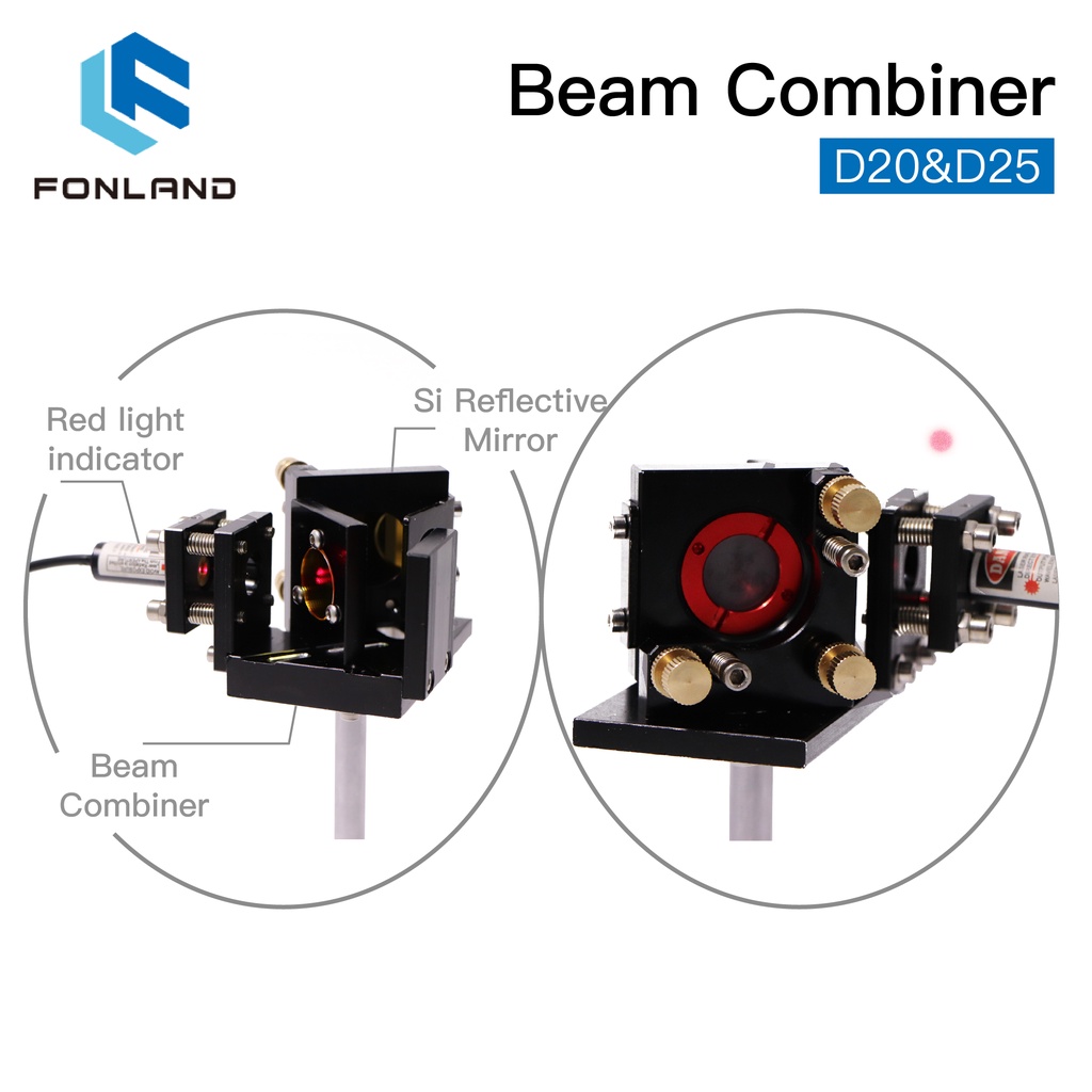 New FONLAND ZnSe Laser Beam Combiner Set D20/25mm ZnSe Beam lens+Combiner Mount Red Pointer for CO2 Laser Engraving Cutting Machine