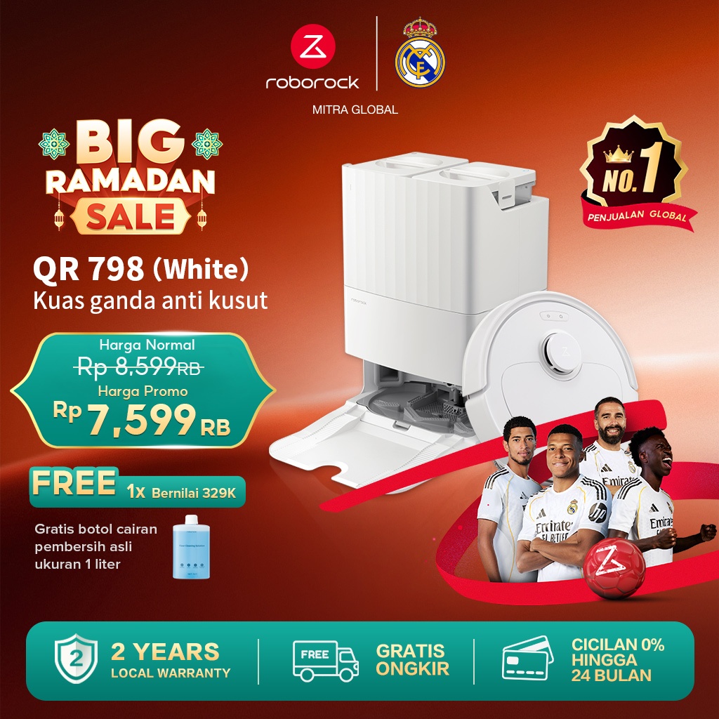 Roborock QR 798 Daya Hisap Kuat 10000 Pa Anti-Tangle Side Brush Garansi Resmi 2 Tahun