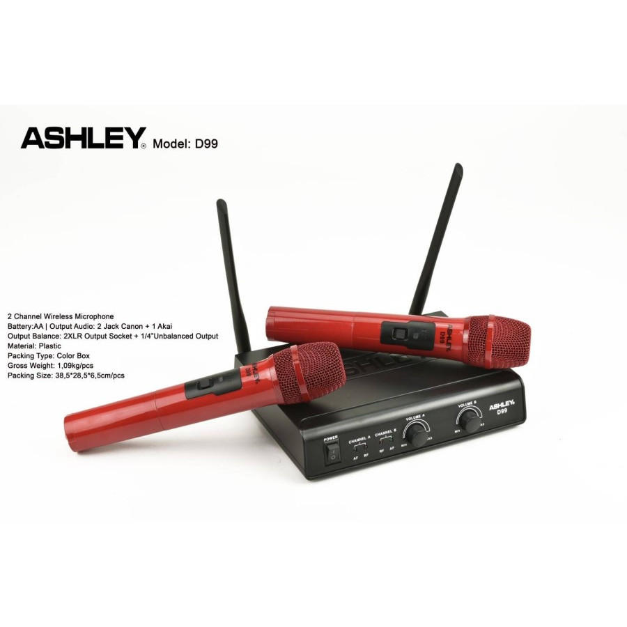 New Mic Wireless ASHLEY D99 Microphone ORIGINAL GARANSI RESMI 1 TAHUN