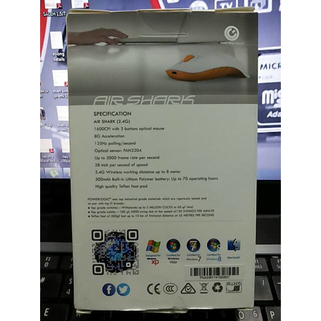 New POWERLOGIC Air Shark 2.4G Mouse Wireless tanpa batere AA/AAA. Keren