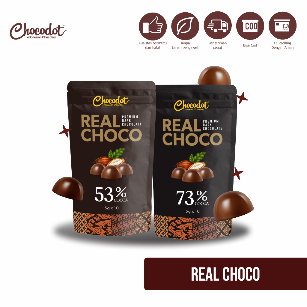 New Product Coklat Chocodot Real Choco Premium Dark Chocolate 53% Cocoa 50g