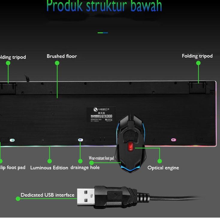 New Sale keyboard mechanical komputer Set Gaming Mouse dan Keyboard USB Cable RGB