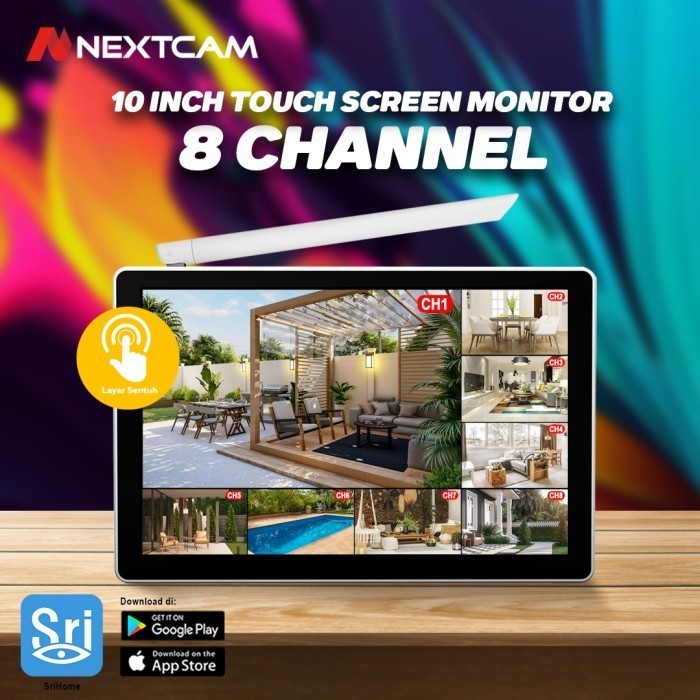 Nextcam Paket cctv 8 channel 4 kamera 5MP NVR plus monitor Layar Sentuh Touch screen 10.1 inch Kamera Colorful tetap warna dalam gelap PTZ bisa putar Langsung colok adaptor langsung tampil gambar tanpa setting Smart alarm NC-WMN958