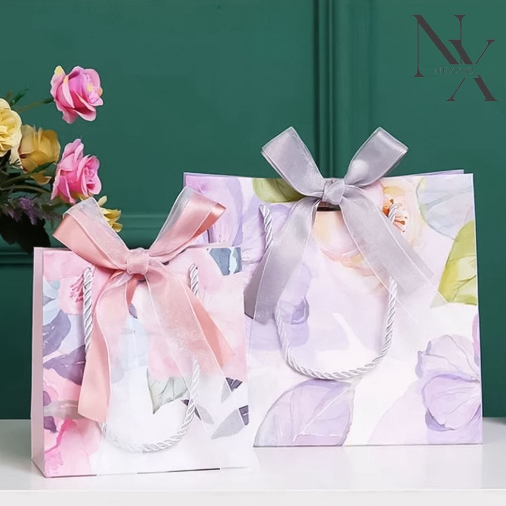 Nexxio Paper Bag Mewah Premium Plus Pita / Paperbag Premium / Paper Bag Marmer / Kado Kertas Kantong / Paper Bag Kertas Karton Dengan Pita Aneka Motif