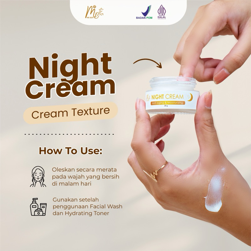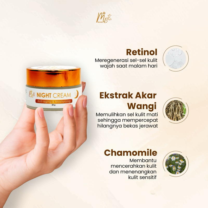 Night Cream MB SKIN | Krim Malam Pencerah/Glowing/Menyamarkan Flek Hitam Ringan