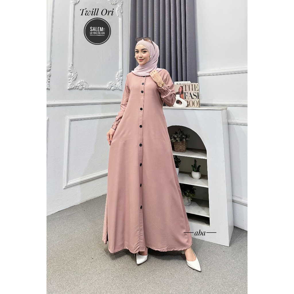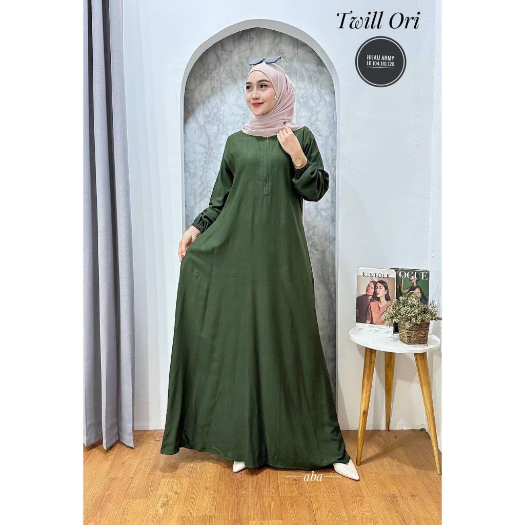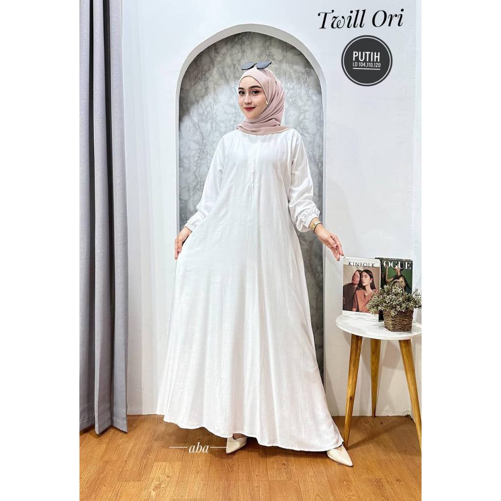 Nikmat Batik - Gamis Polos Putih Bersih - busui kancing dan resleting depan bahan Twill ori bisa COD